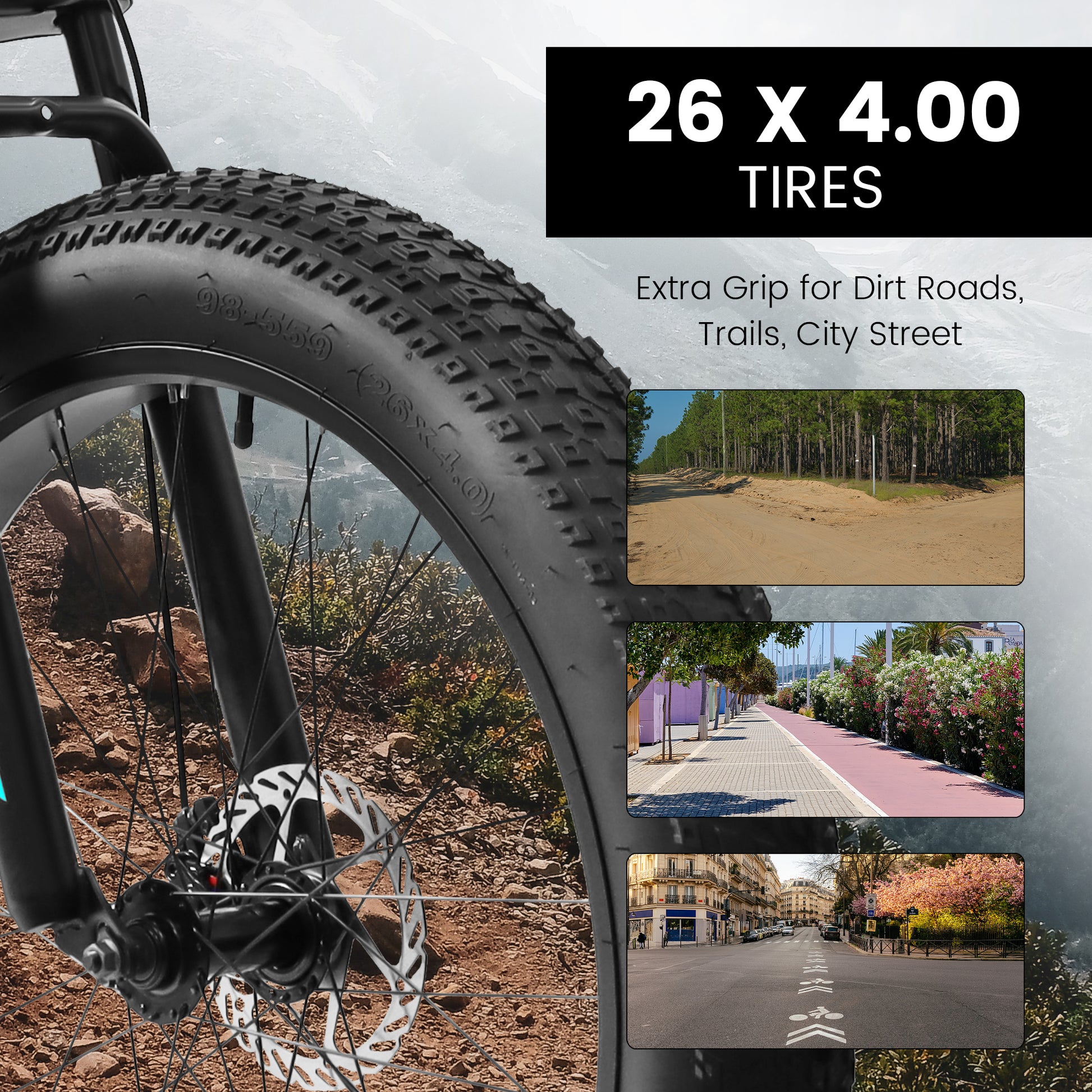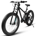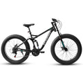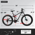 A26309 26 Inch Mountain Bike,Full Suspension 21 Speeds Drivetrain With Disc Brake Mtb Bicycle, 26*4" Fat Tire Bike For Men Or Women. Black Steel