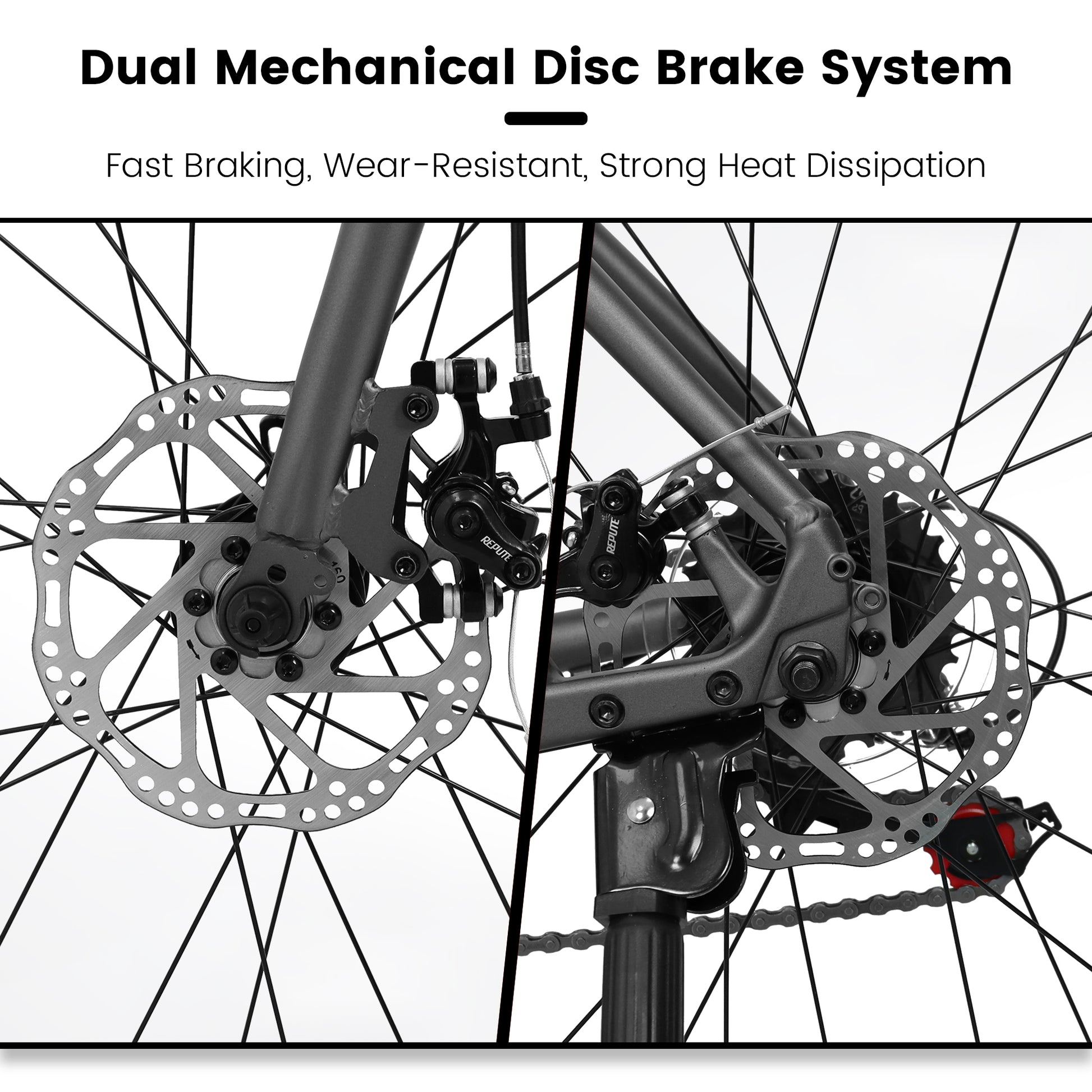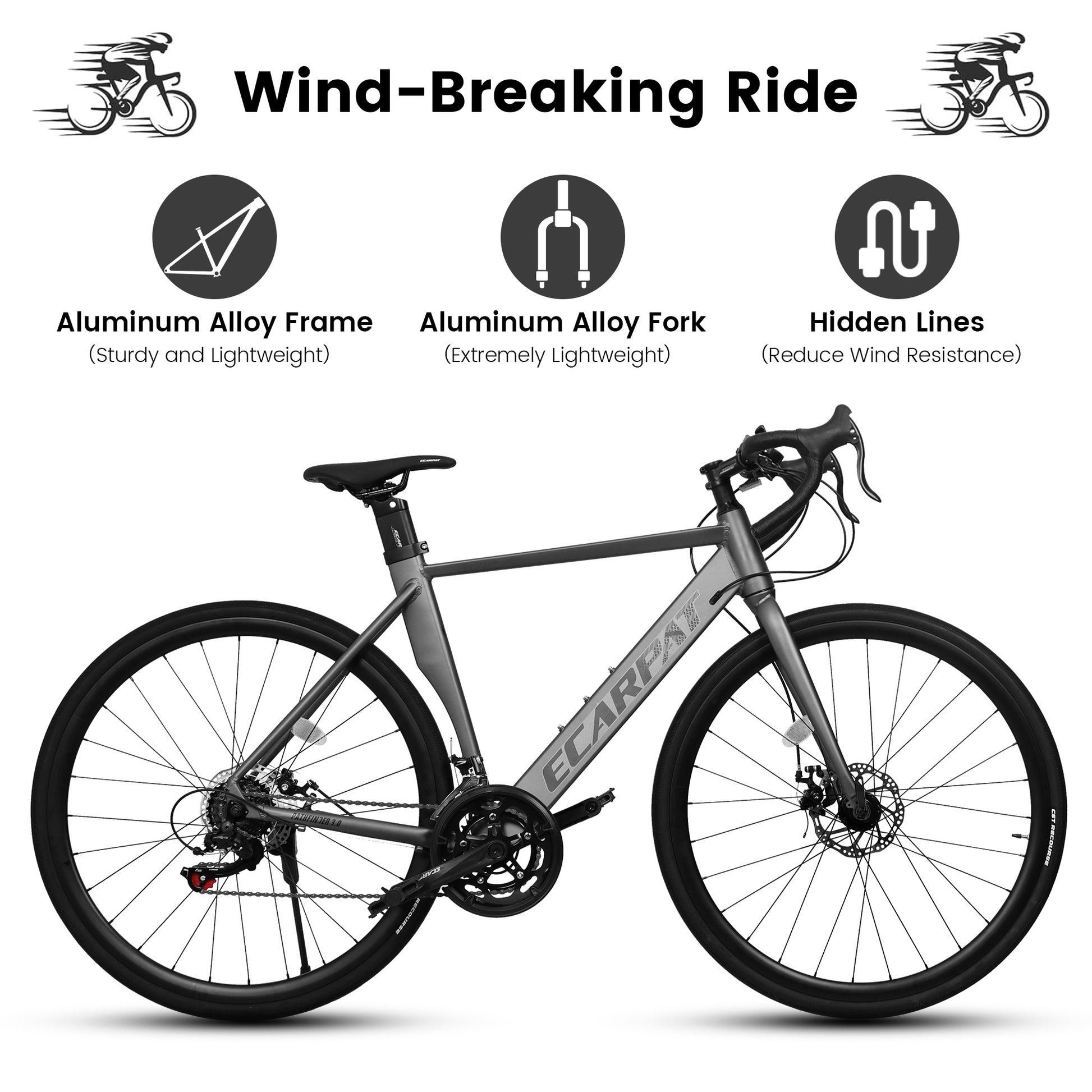A28315 Road Bike, Suspension Fork, Aluminum Frame Disc Brakes, Men'S Women'S Road Bike Gray Aluminium