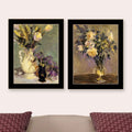 "Abstract Tulips & Lavender Flower Vases" Framed Wall Art For Living Room, Wall Art Print For Home Decor, Bedroom Wall Art By Jg Studio Multicolor Wood Paper