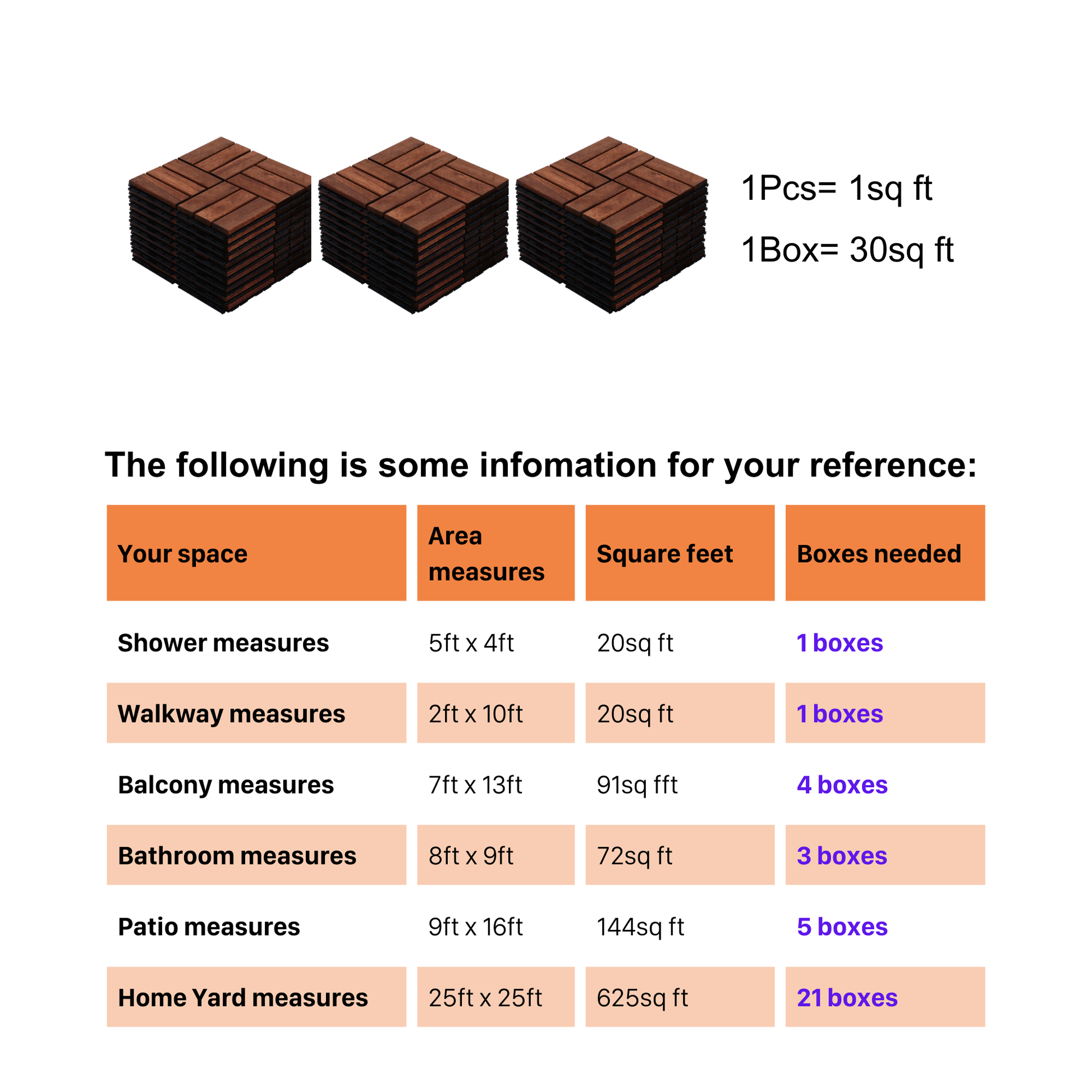 Acacia Wood Interlocking Deck Tiles Checker Pattern, 30 Pcs 12" X 12" Square Acacia Hardwood Outdoor Flooring For Patio, Bancony, Pool Side,.. Brown Garden & Outdoor American Design,American Traditional,Antique Acacia Wood