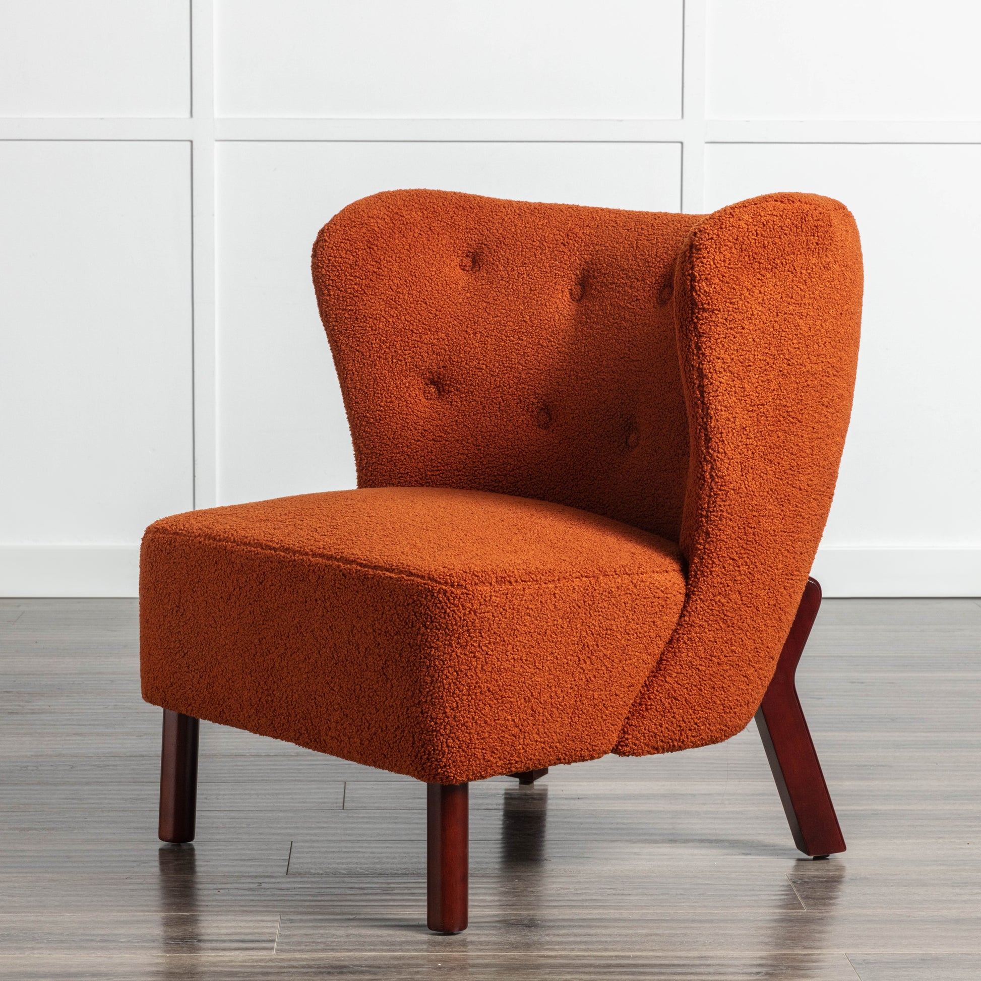 Accent Chair, Upholstered Armless Chair Lambskin Sherpa Single Sofa Chair With Wooden Legs, Modern Reading Chair For Living Room Bedroom Small Spaces Apartment, Burnt Orange Burnt Orange Polyester