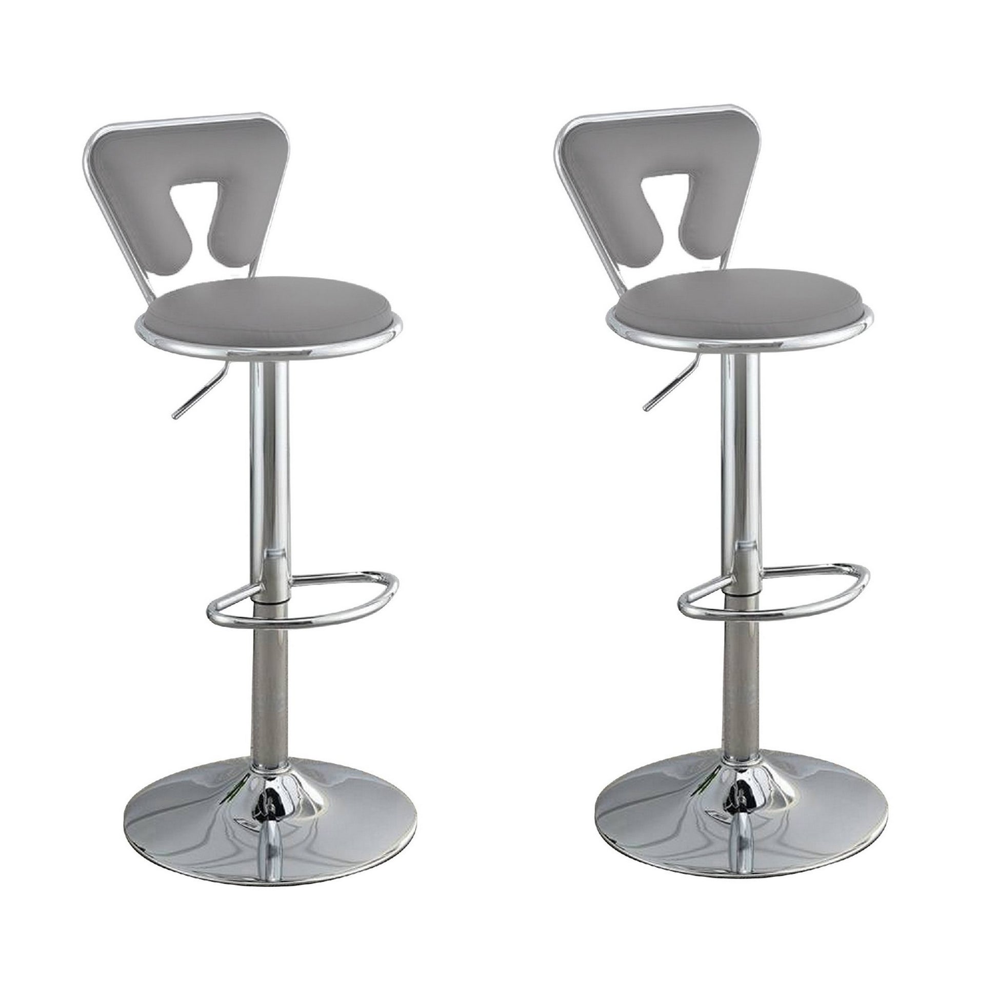 Adjustable Barstool With Round Seat And Stalk Support, Set Of 2, Gray Gray Fabric Metal