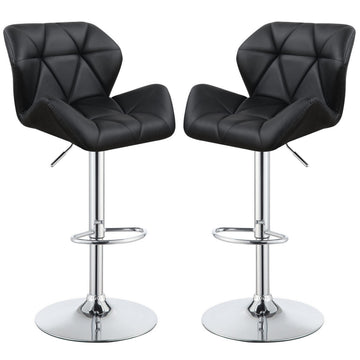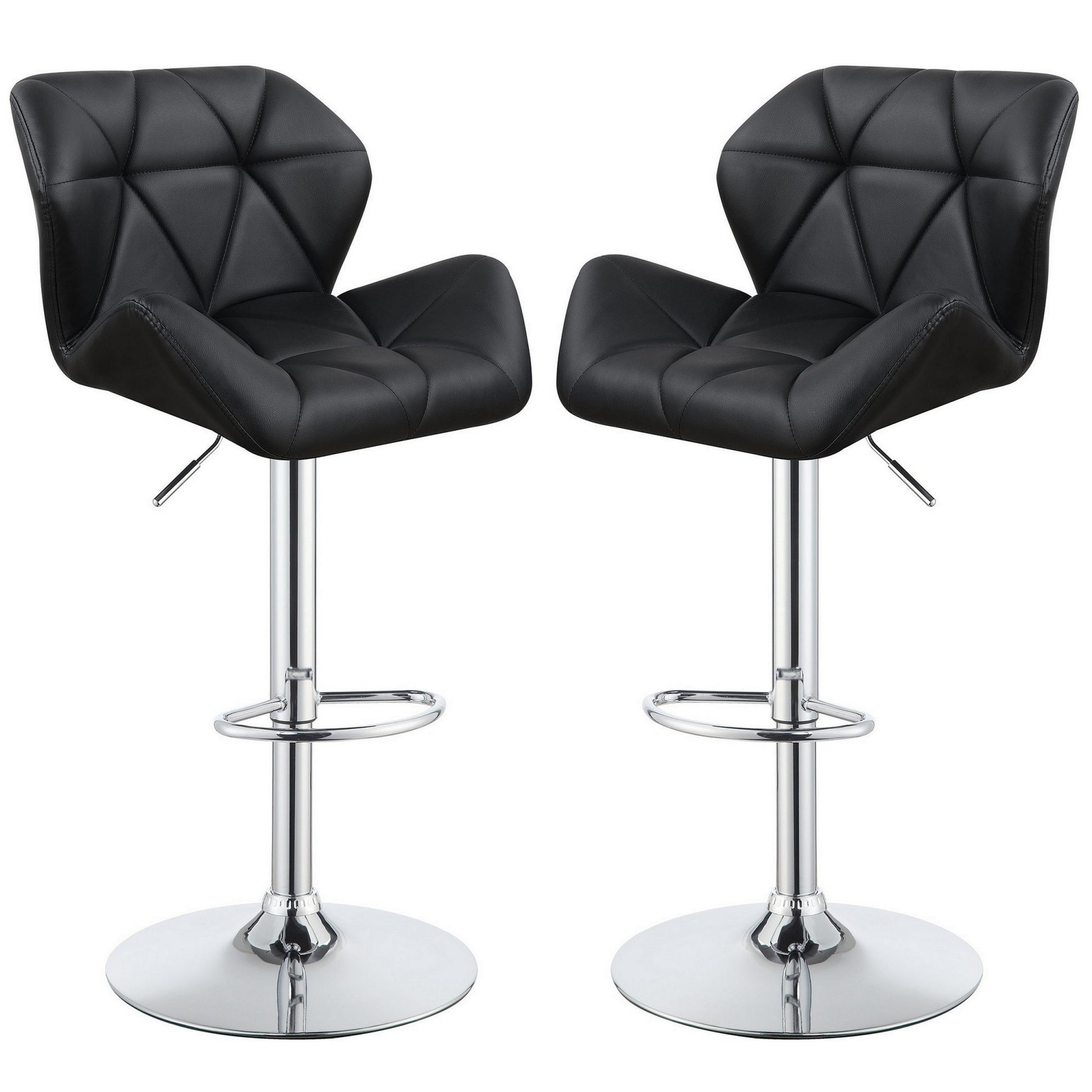 Adjustable Diamond Bar Stool With Chrome Base, Black ,Set Of 2 Black Silver Fabric Metal