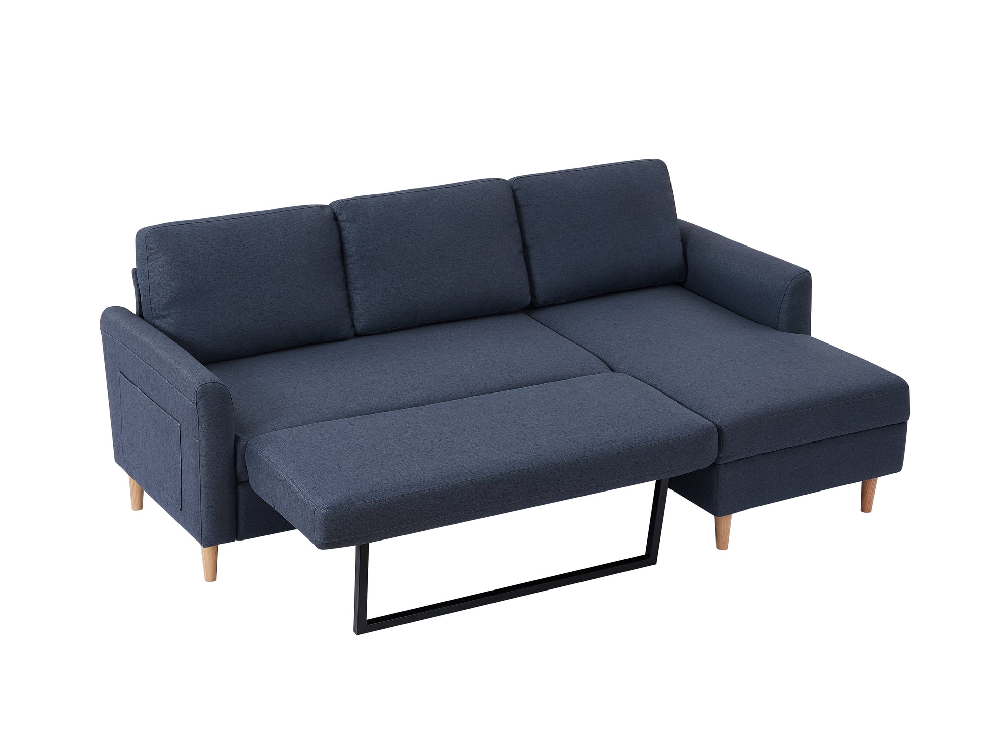 Adjustable L Shaped Sofa Bed With Chaise Blue Grey, Upholstered Fabric Sleeper Sectional Sofa With Chaise Modern Craftsman Fashion Sofa Set, Apartment Living Room Sofa With For Small Space Blue Gray Fabric