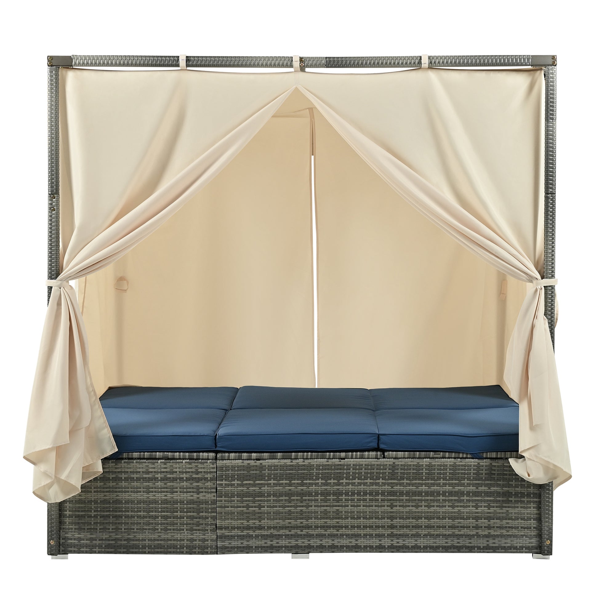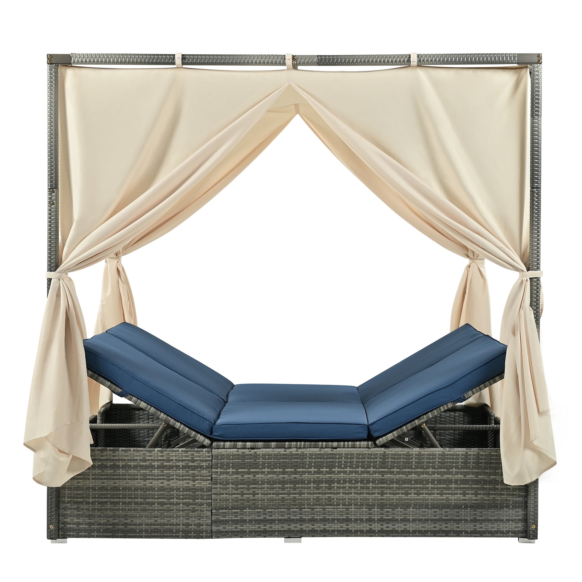 Adjustable Sun Bed With Curtain,High Comfort,With 3 Colors Blue Hdpe