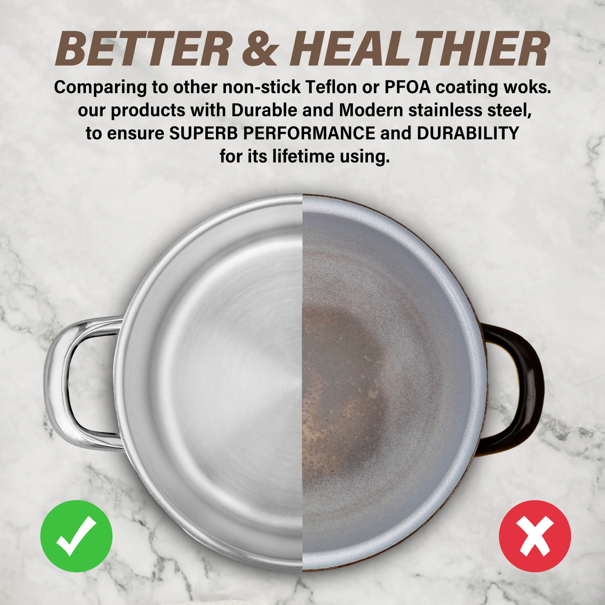 Advanced Aluminum 6 Piece Cookware Set 2.0Mm Pressed Aluminum Construction With Titanium Coating Induction Bottom, Tempered Glass Lid, Stylish Metallic Exterior Silver Aluminium