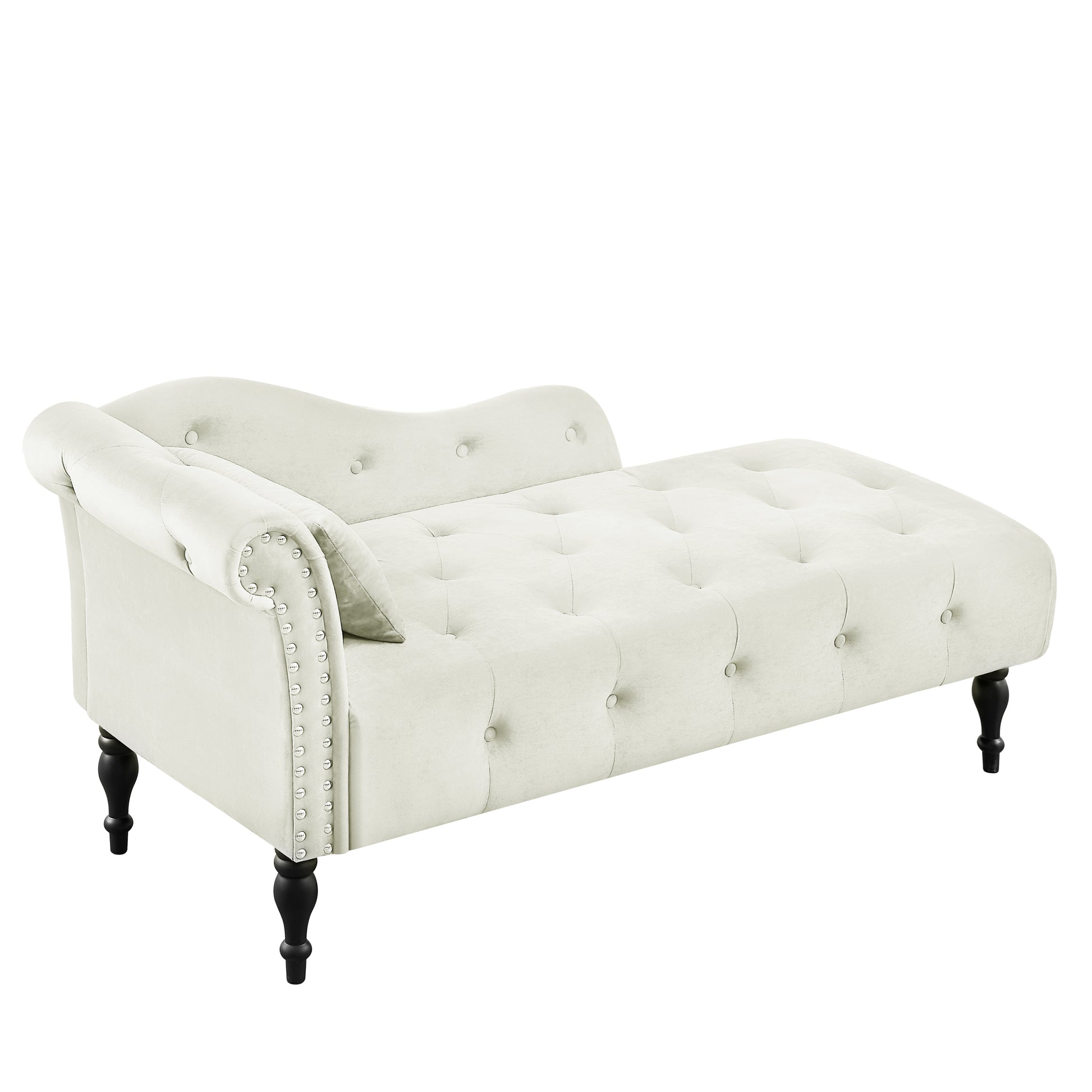 Aijia 60.6" Velvet Chaise Lounge Buttons Tufted Trimmed Solid Wood Legs With 1 Pillow,White Left Arm Design As Shown In The Picture White Velvet