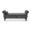 Aijia 63" Velvet Multifunctional Storage Rectangular Sofa Stool Buttons Tufted Trimmed Solid Wood Legs With 1 Pillow,Grey Grey Velvet