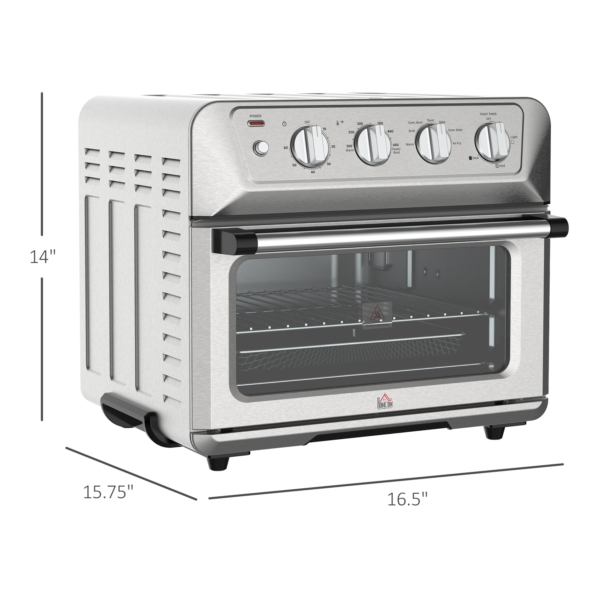Air Fryer Toaster Oven, 21Qt 7 In 1 Convection Oven Countertop, Warm, Broil, Toast, Bake And Air Fry, 4 Accessories Included, 1800W, Stainless Steel Finish Silver Stainless Steel