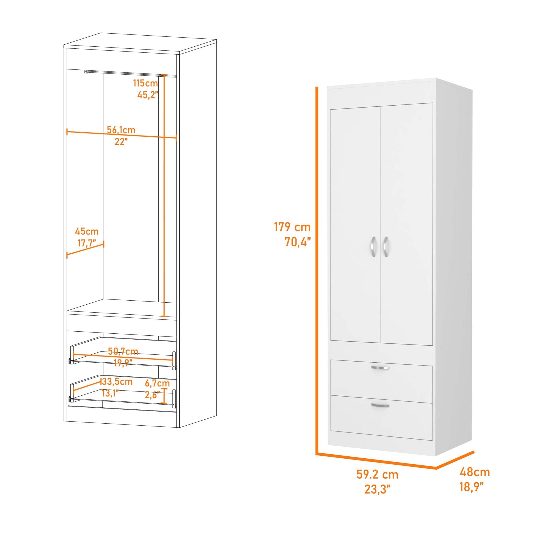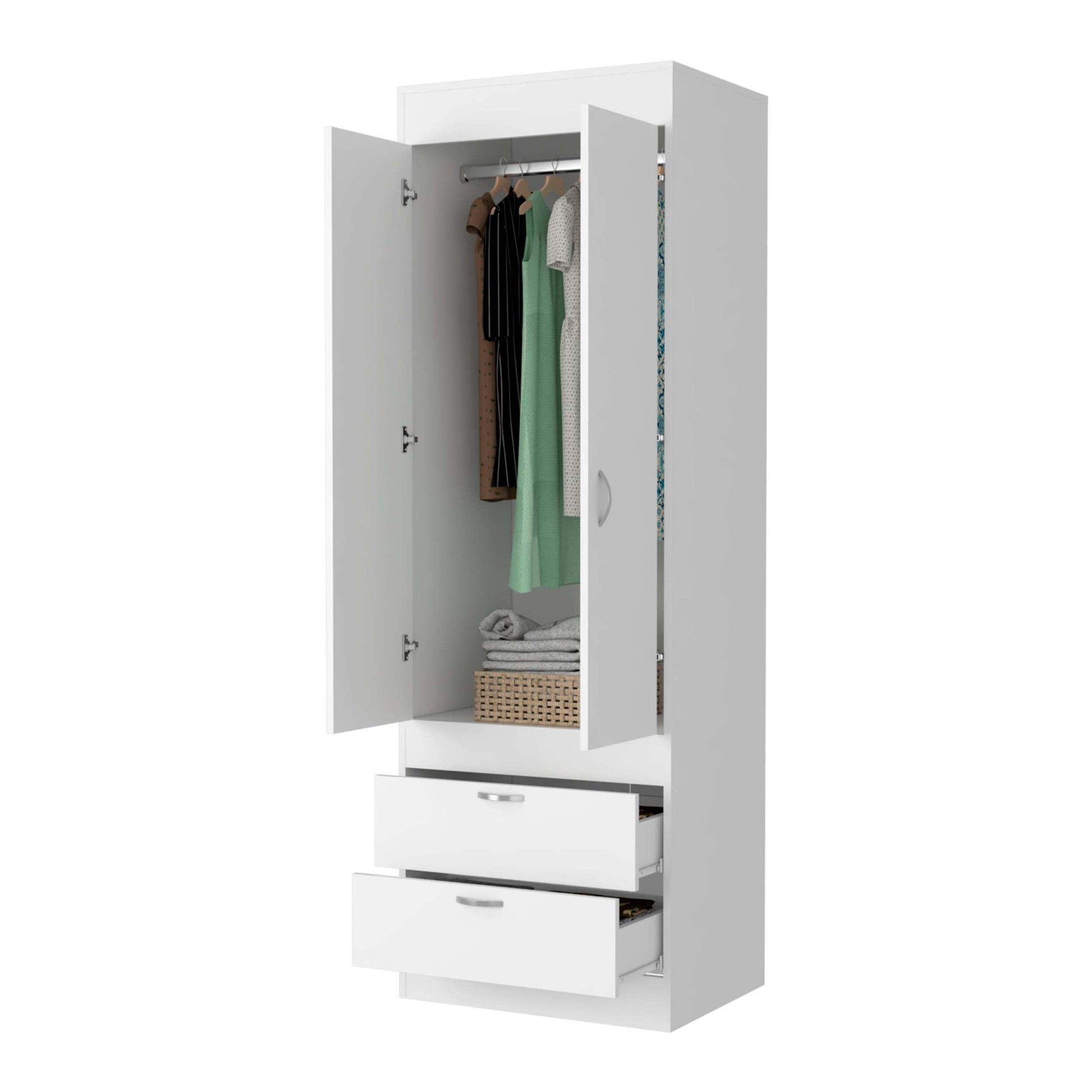Alabama Armoire, One Large Cabinet, Two Drawers White Mdf Engineered Wood
