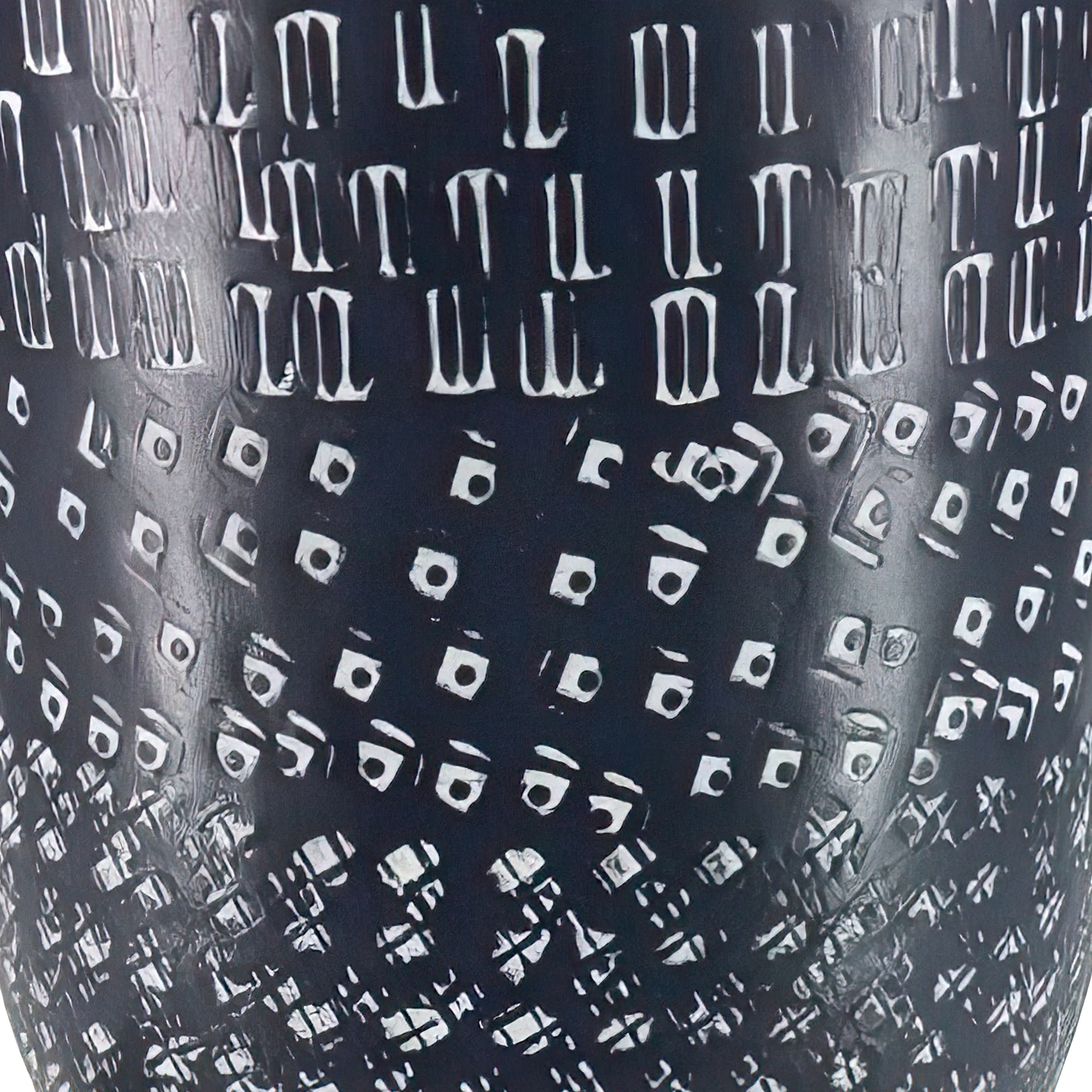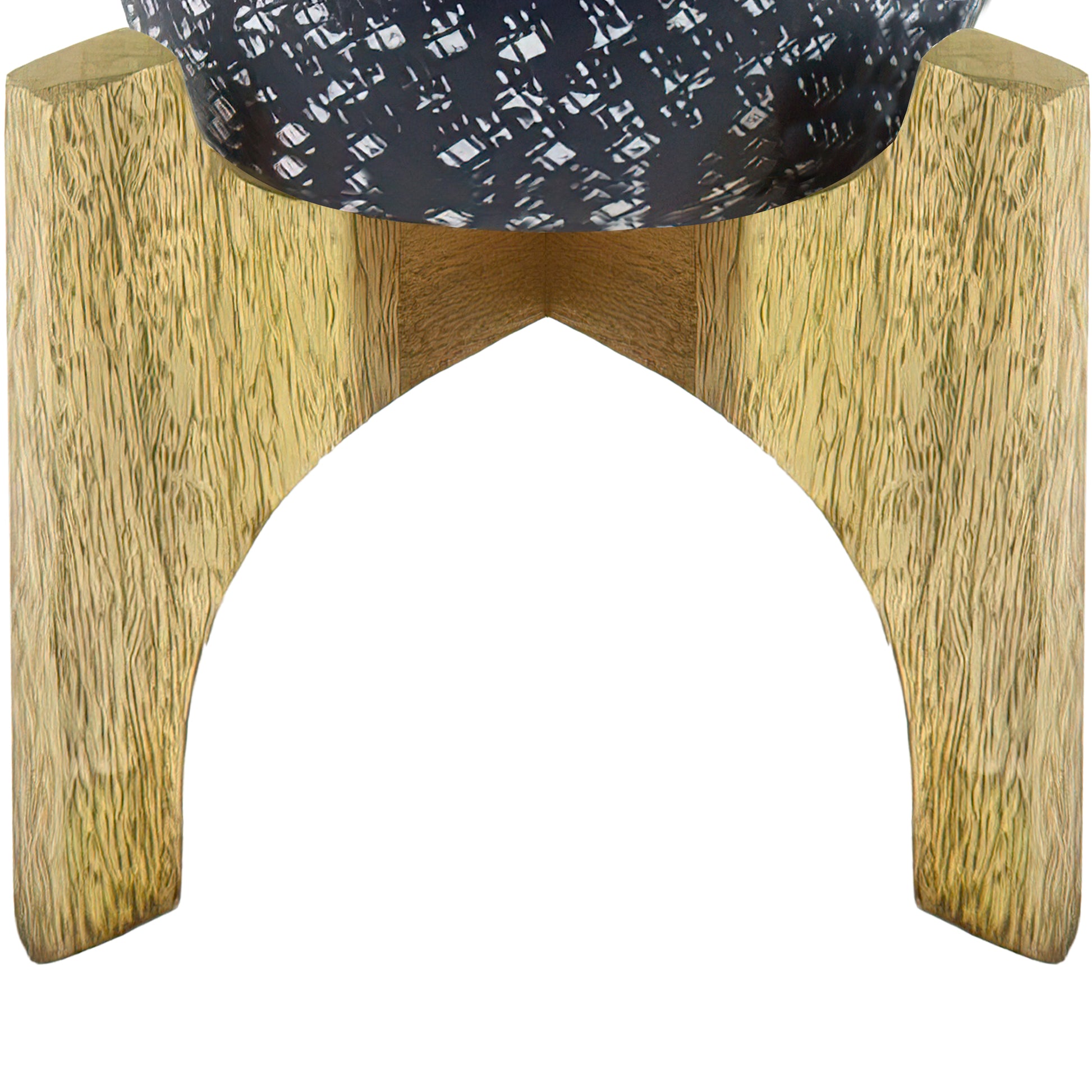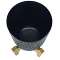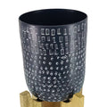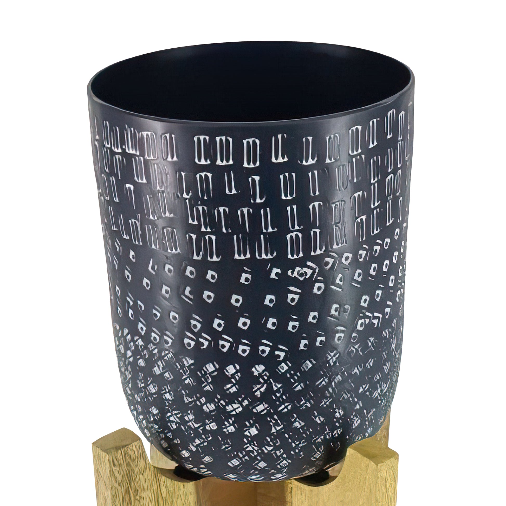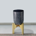 Alex 8 Inch Artisanal Industrial Round Hammered Metal Planter Pot With Wood Arch Stand, Midnight Blue Blue Metal & Wood