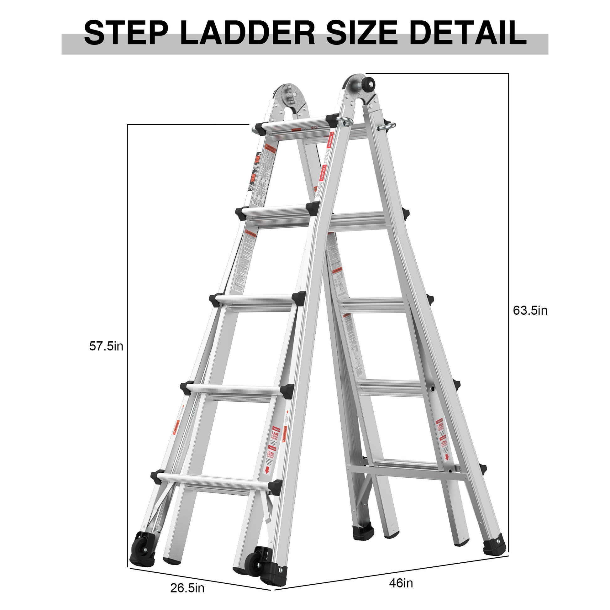 Aluminum Multi Position Ladder With Wheels, 300 Lbs Weight Rating, 22 Ft Metallic Grey Aluminium Alloy