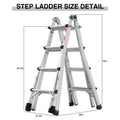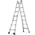 Aluminum Multi Position Ladder With Wheels, 300 Lbs Weight Rating, 17 Ft Metallic Grey Aluminium Alloy