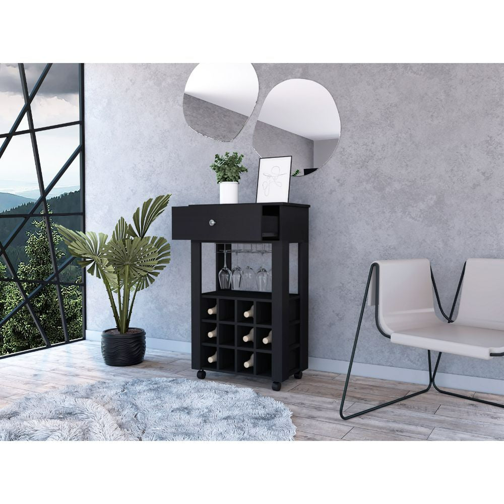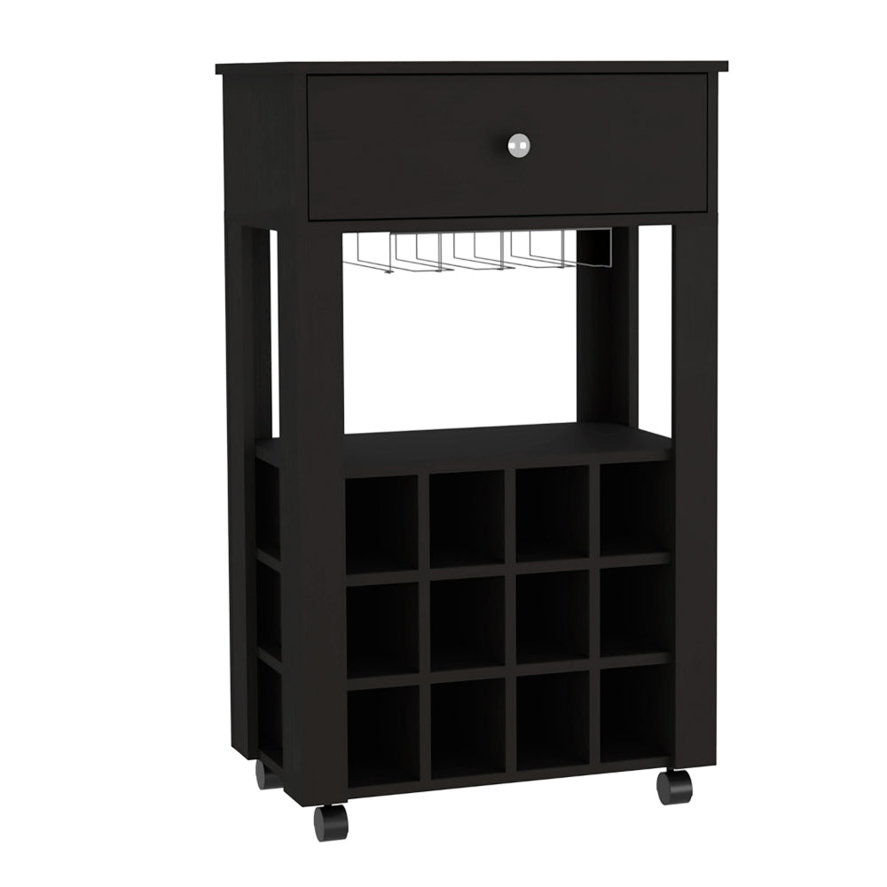 Ambler 1 Drawer 12 Bottle Wine Cabinet Black Wengue Black Particle Board