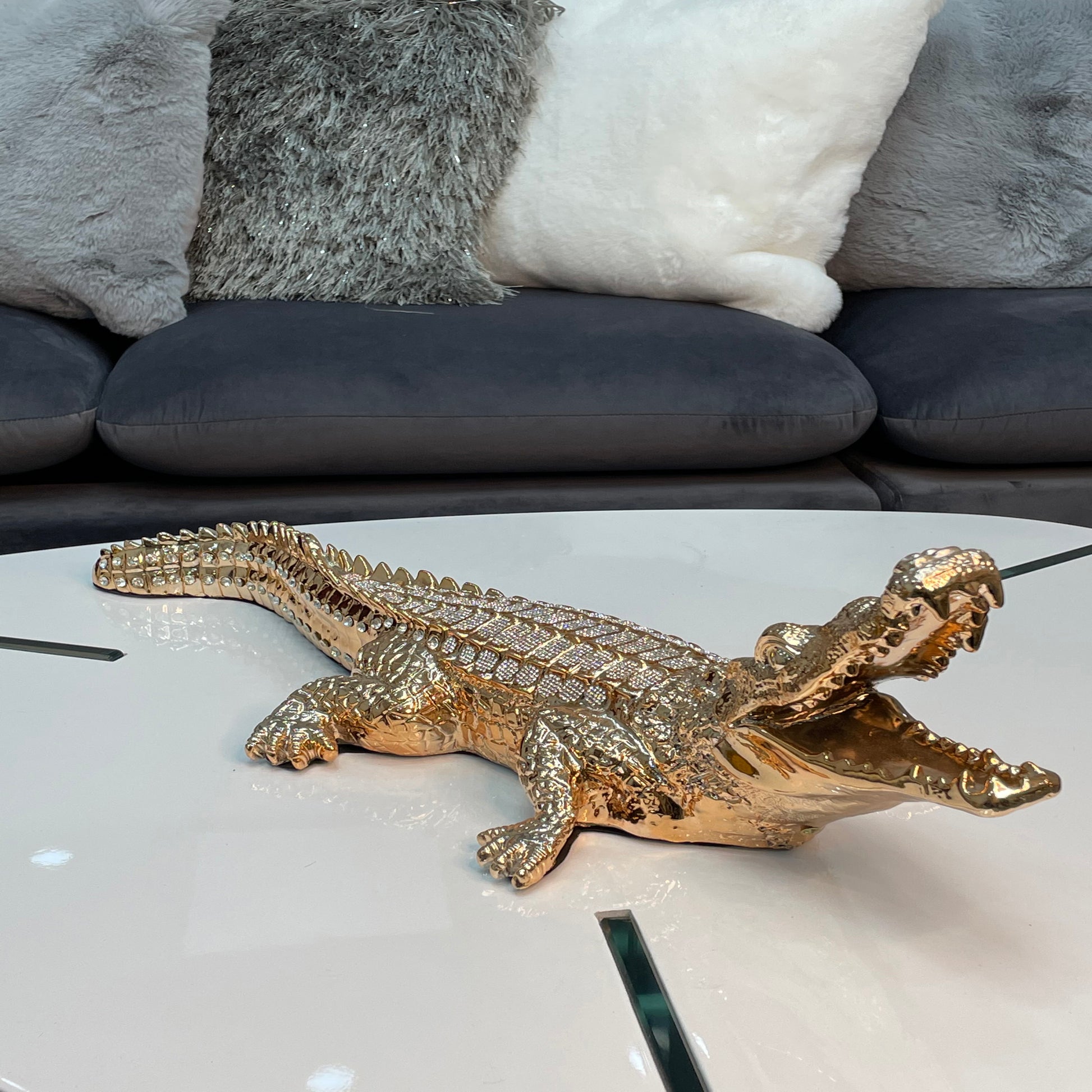 Ambrose Diamond Encrusted Gold Plated Crocodile 25"L X 9"W X 7.5"H Gold Polyresin