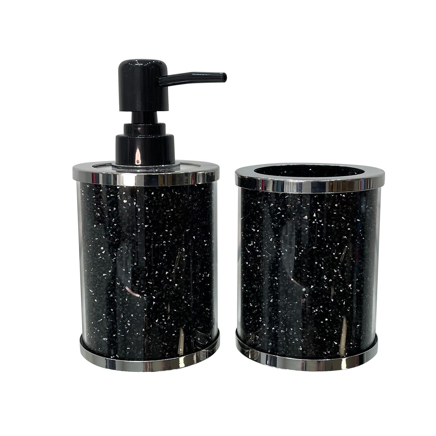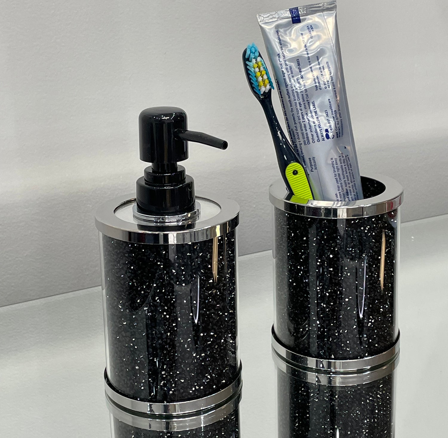 Ambrose Exquisite 2 Piece Soap Dispenser And Toothbrush Holder In Gift Box Black Glass