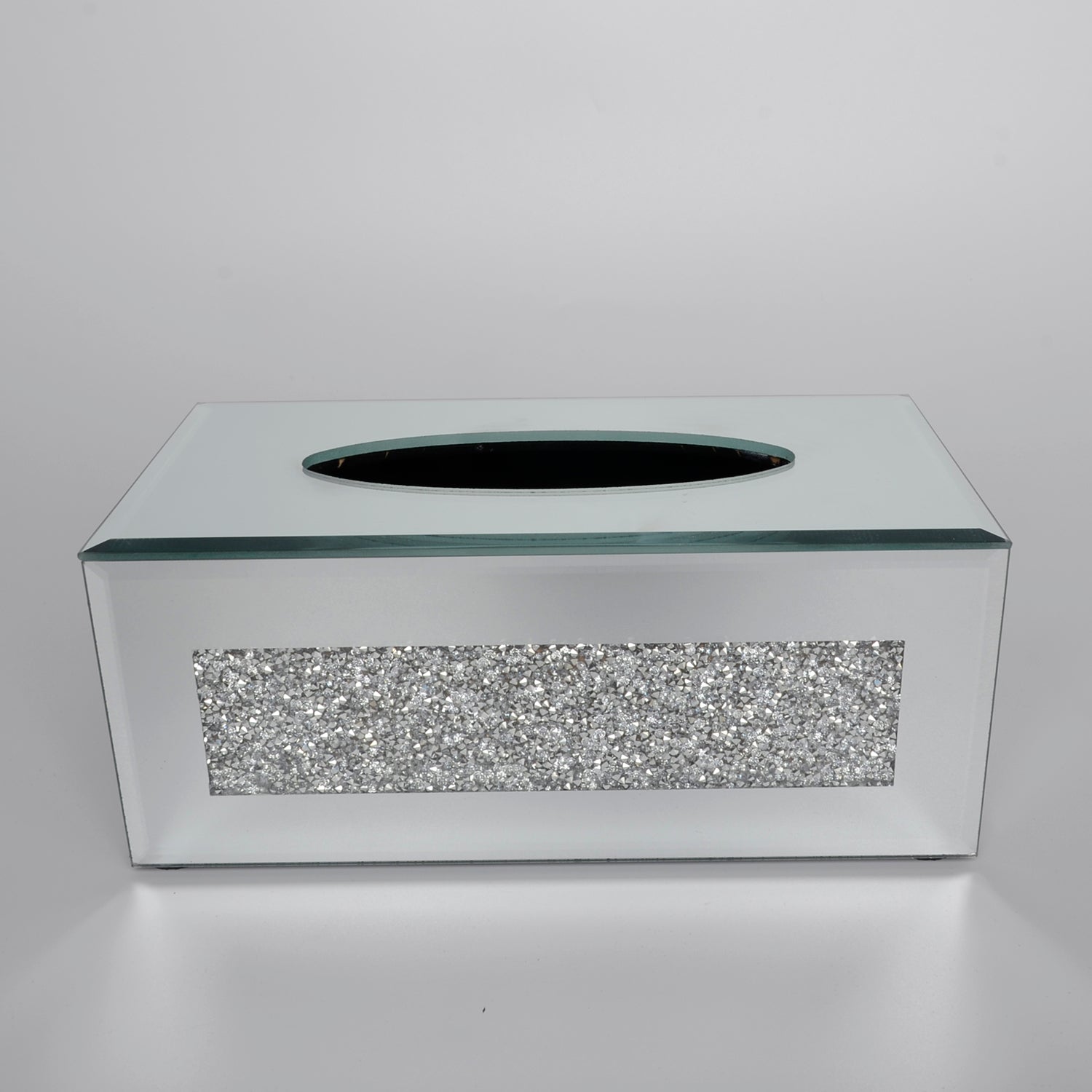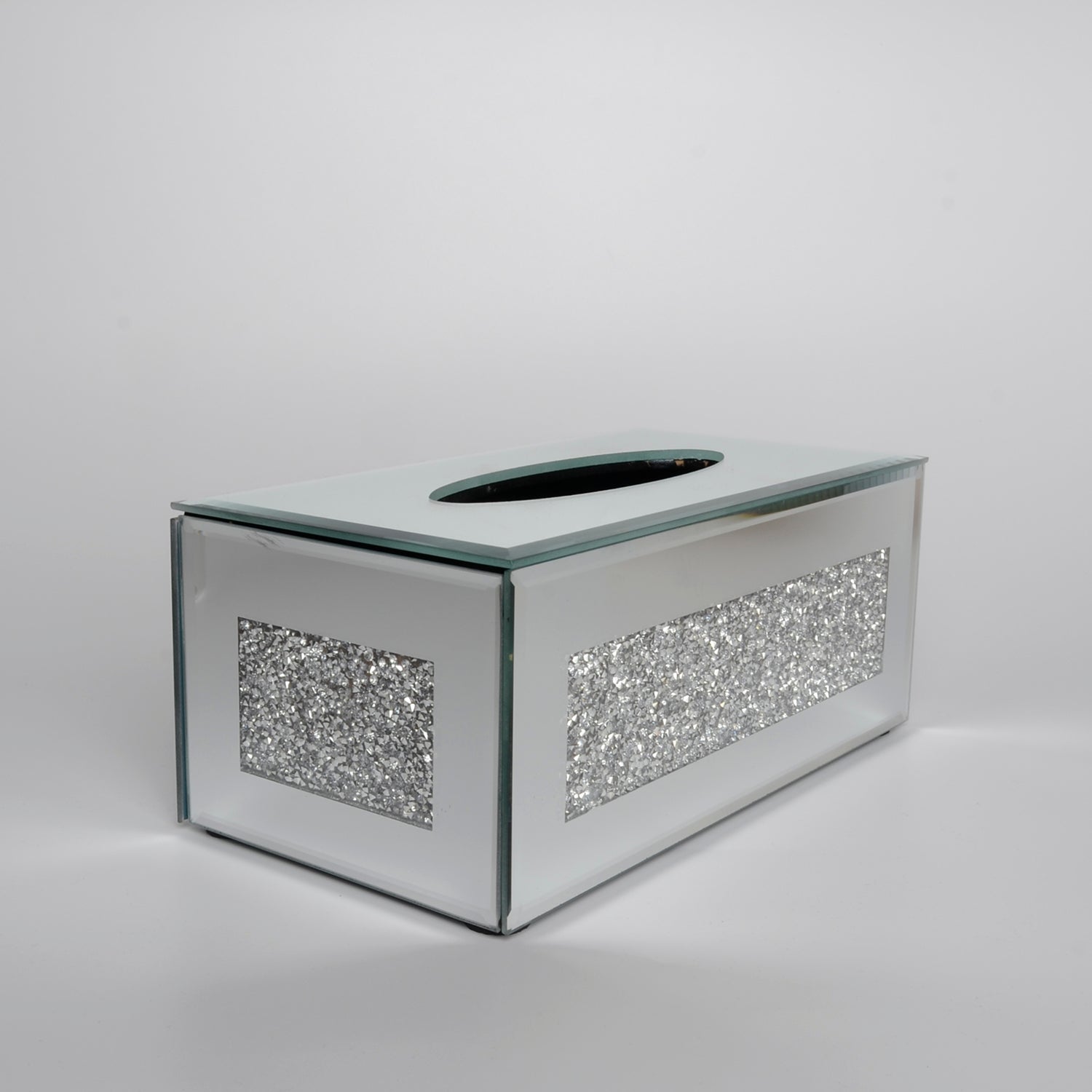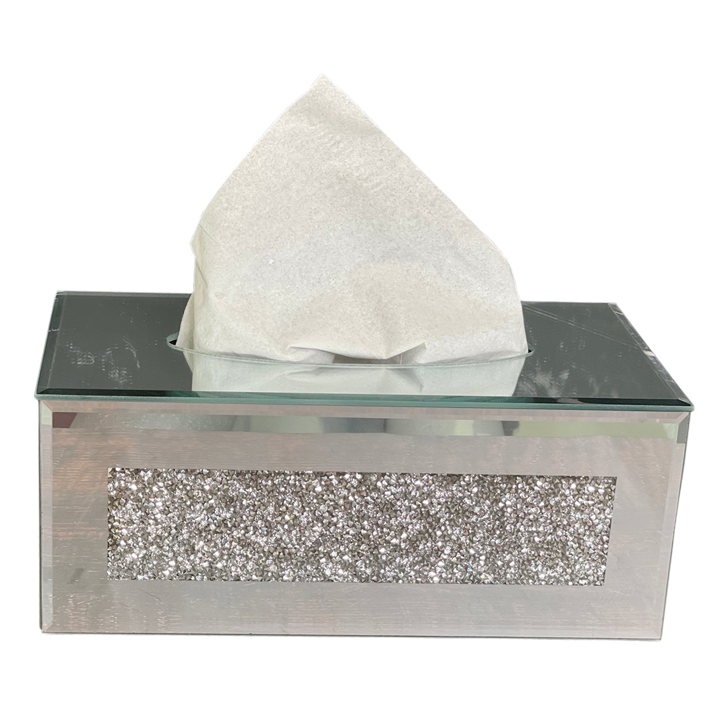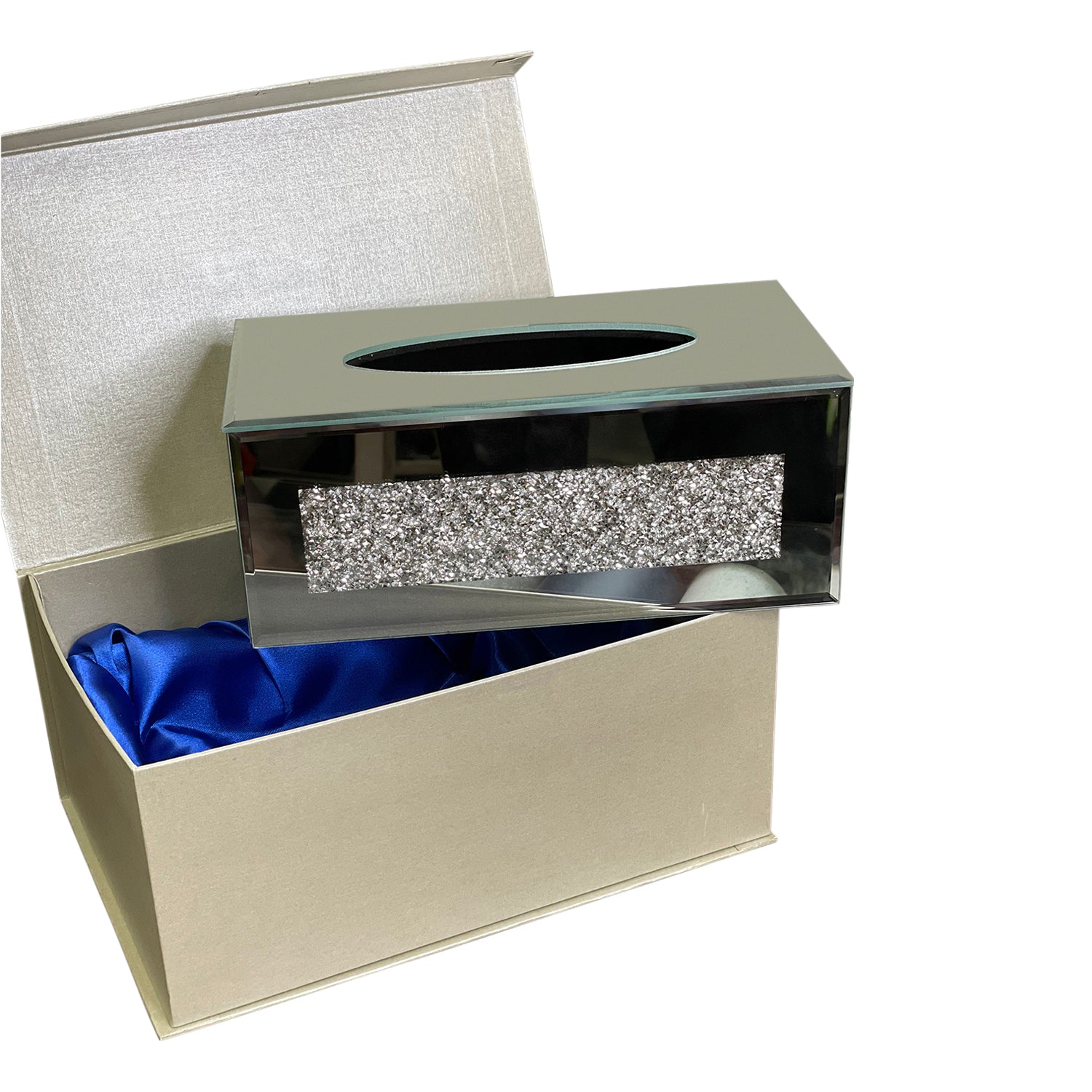 Ambrose Exquisite Mirrored Tissue Holder In Gift Box Silver Glass
