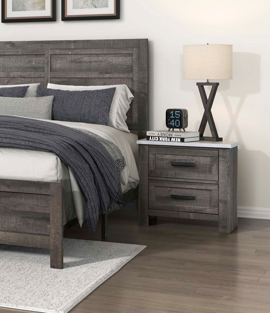 Antique Gray And White Storage Nightstand With Drawers, Bedside Table, Bedroom Furniture Hardwood Veneer Antique Gray 2 Drawers Bedroom Industrial,Rustic Wood