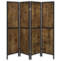 Antique Nutmeg And Black 4 Panel Folding Screen Brown Farmhouse,Rustic Wood