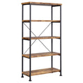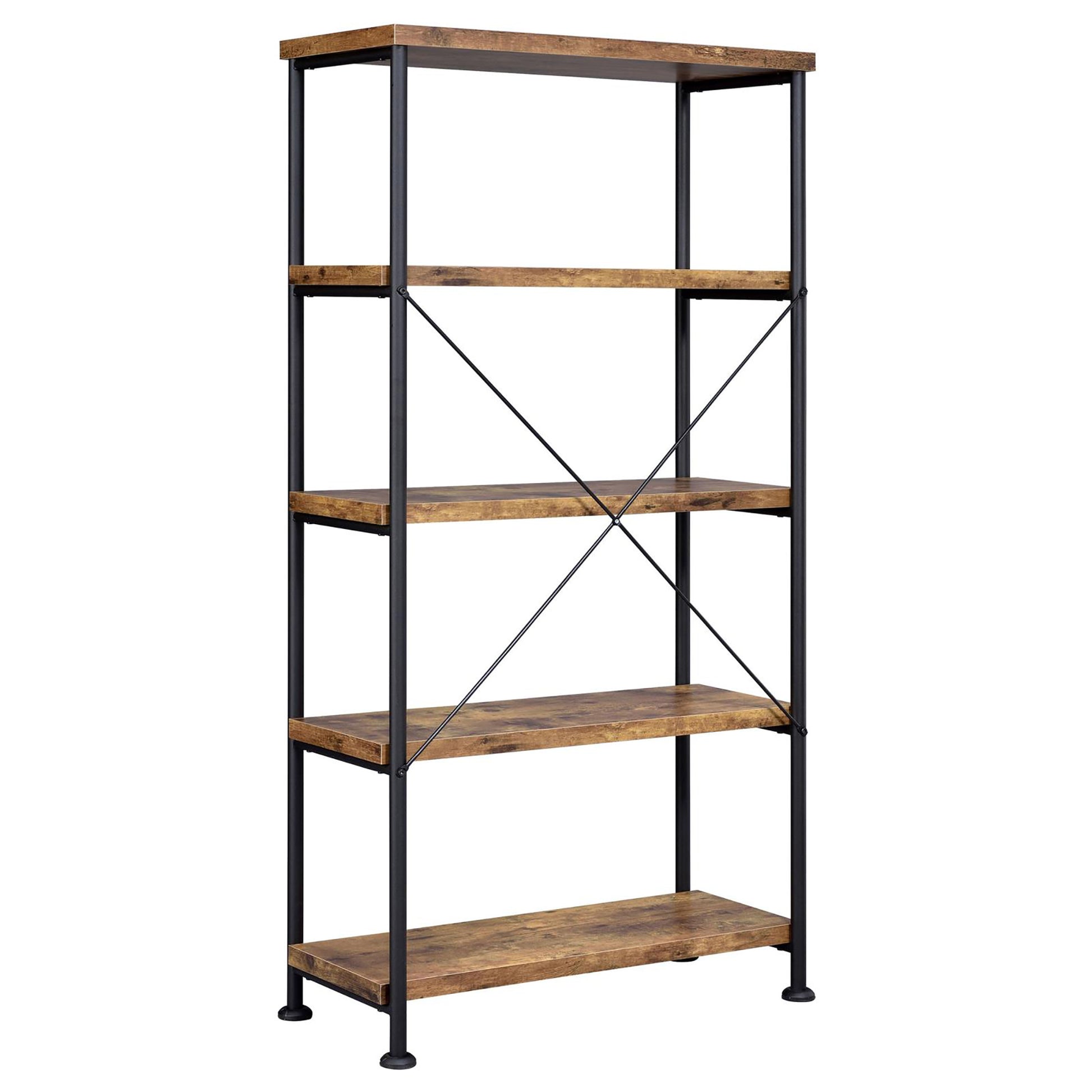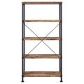 Antique Nutmeg And Black 4 Shelf Bookcase 4 Brown Brown Standard Vertical Office Open Back Wood Farmhouse,Rustic Wood