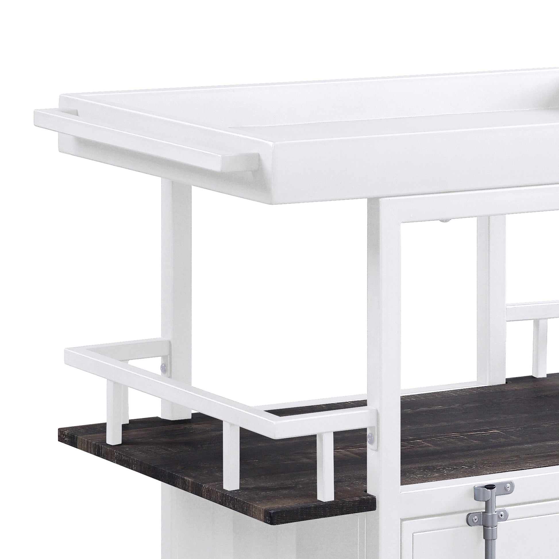 Antique Walnut And White Serving Cart With Tray Top White Dining Room Transitional Rectangular Kitchen Carts Wood Metal Small Less Than 40In