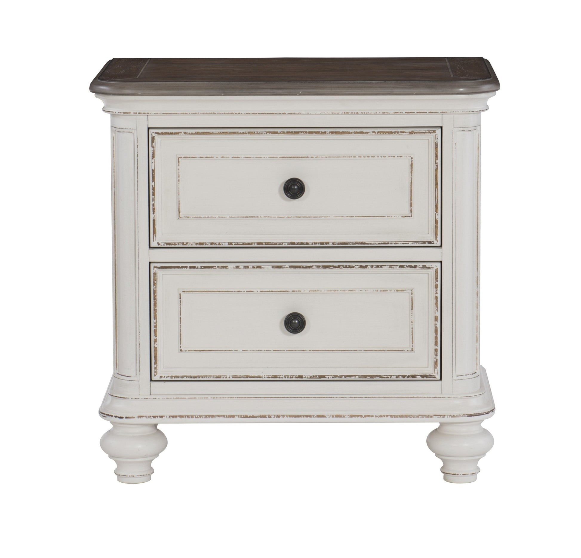 Antique White And Brown Gray Finish1Pc Nightstand Of Drawers Black Knobs Traditional Design Bedroom Furniture Antique White 2 Drawers Bedroom Traditional Wood