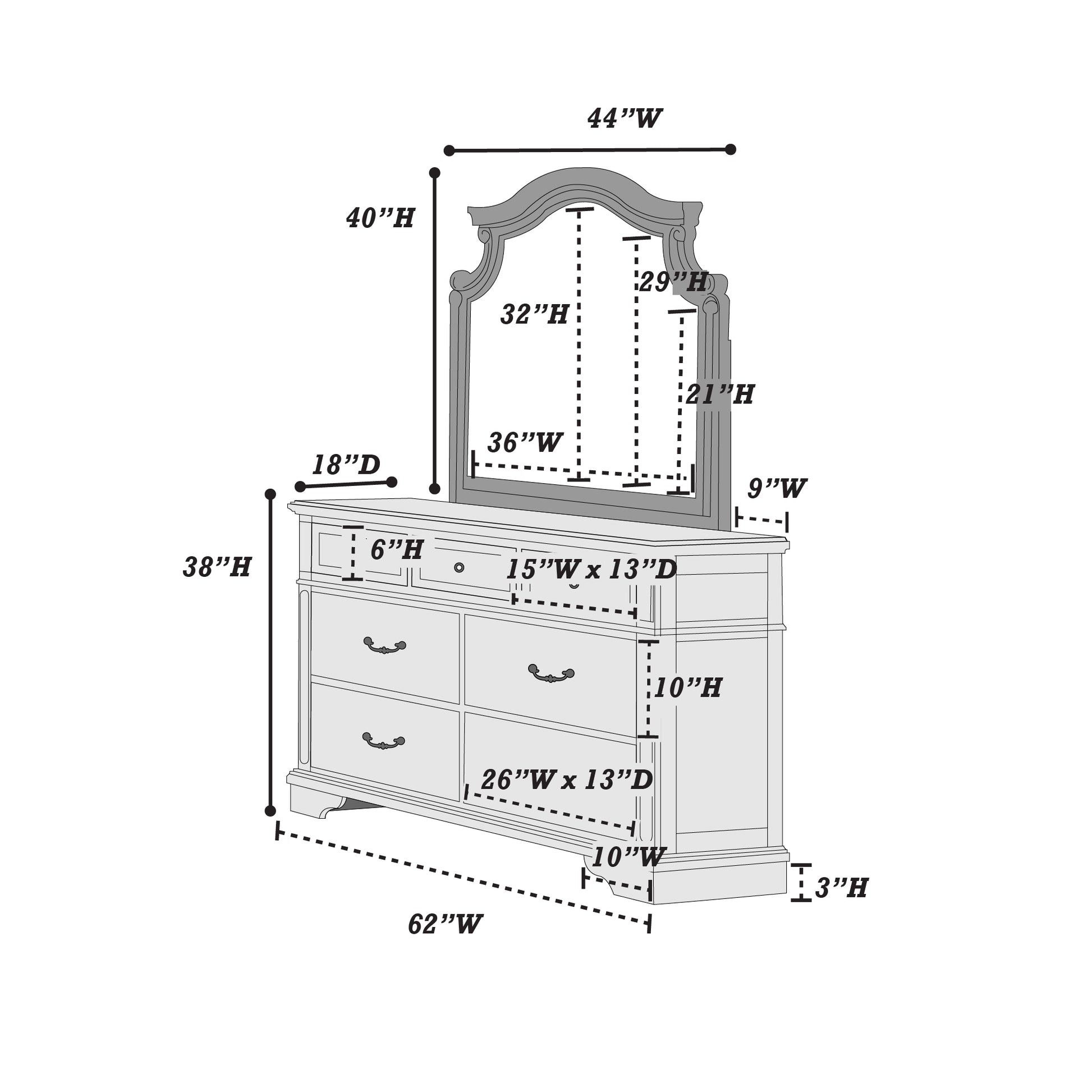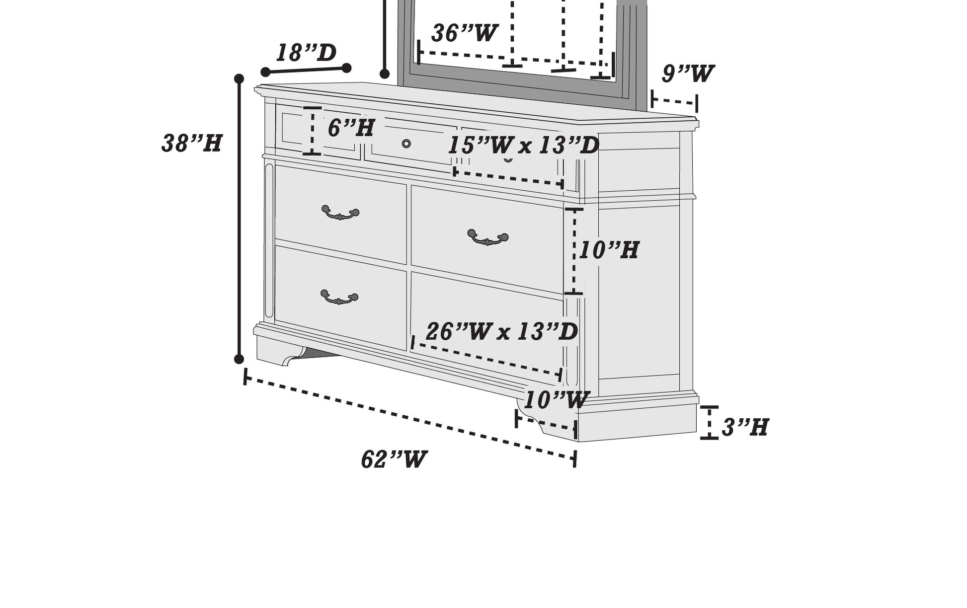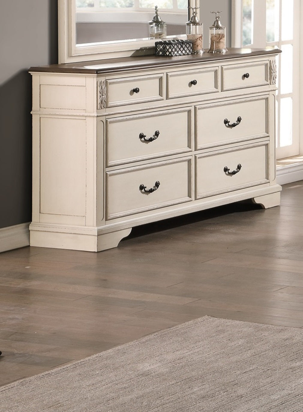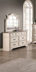 Antique White Wooden 1Pc Dresser Only Bedroom Formal Antique Walnut Top Storage 7 Drawers Dresser Table No Mirror Antique White Bedroom Classic,Contemporary,Transitional Rubberwood Particle Board