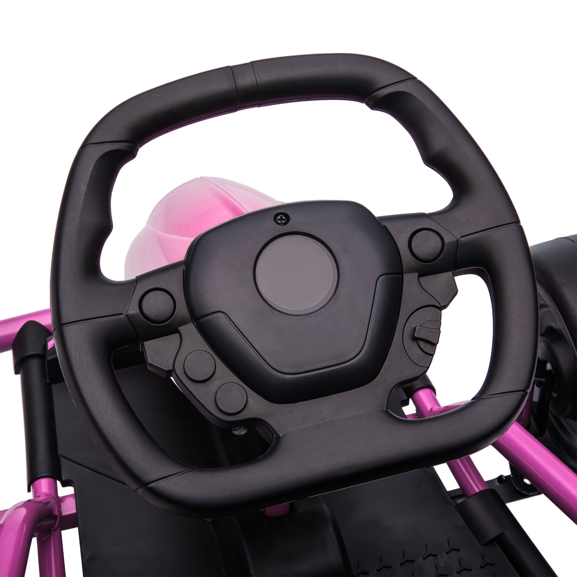 Aosom 24V 8.1 Mph Electric Go Kart, Drifting Car Battery Powered Ride On Toy Outdoor With Slow Start, Music, Horn Honking And Safety Belt, For 8 12 Years Old, Pink Pink Plastic