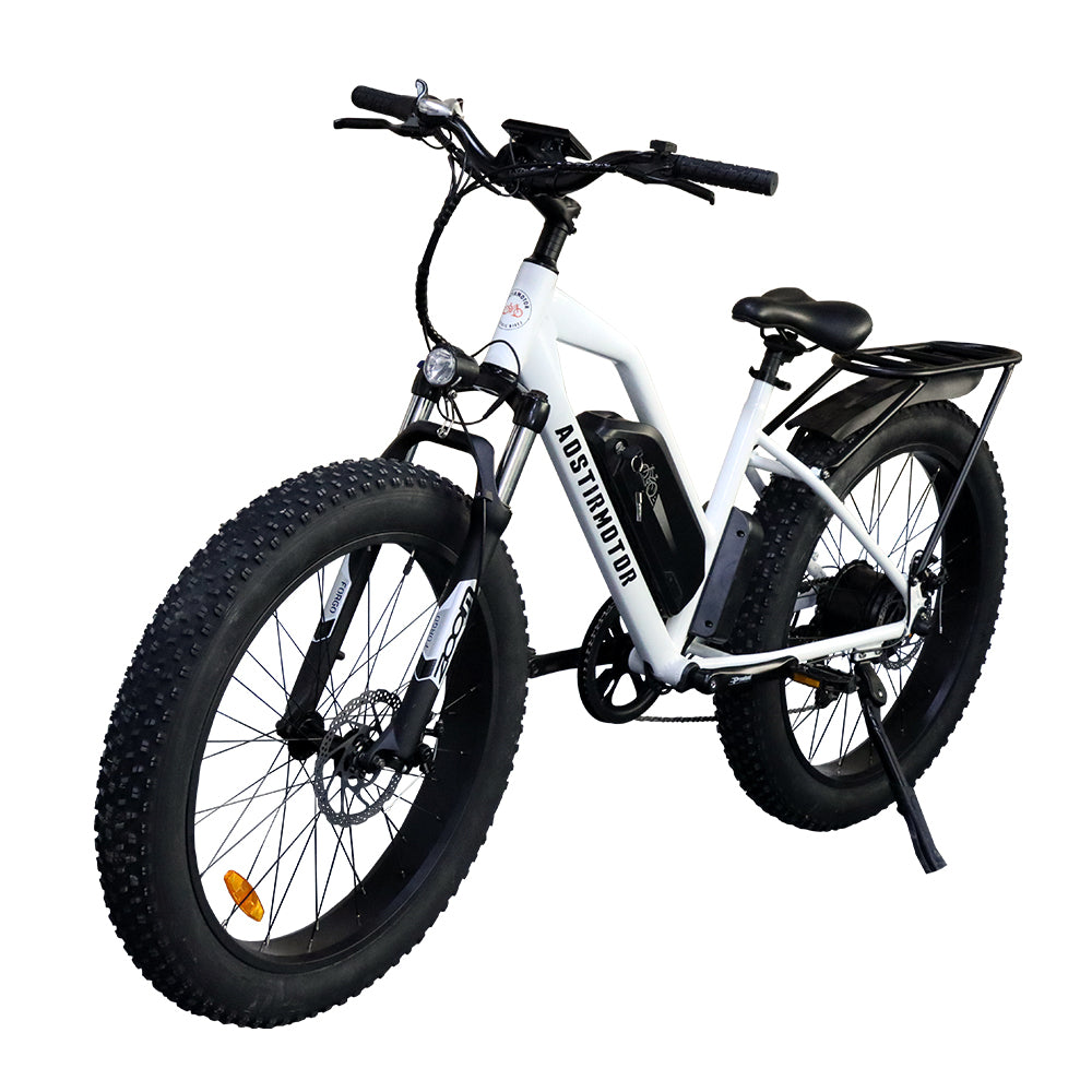 Aostirmotor 26" 750W Camouflage Electric Bike Fat Tire P7 48V 12.5Ah Removable Lithium Battery For Adults With Detachable Rear Rack Fender White S07 G White Aluminium