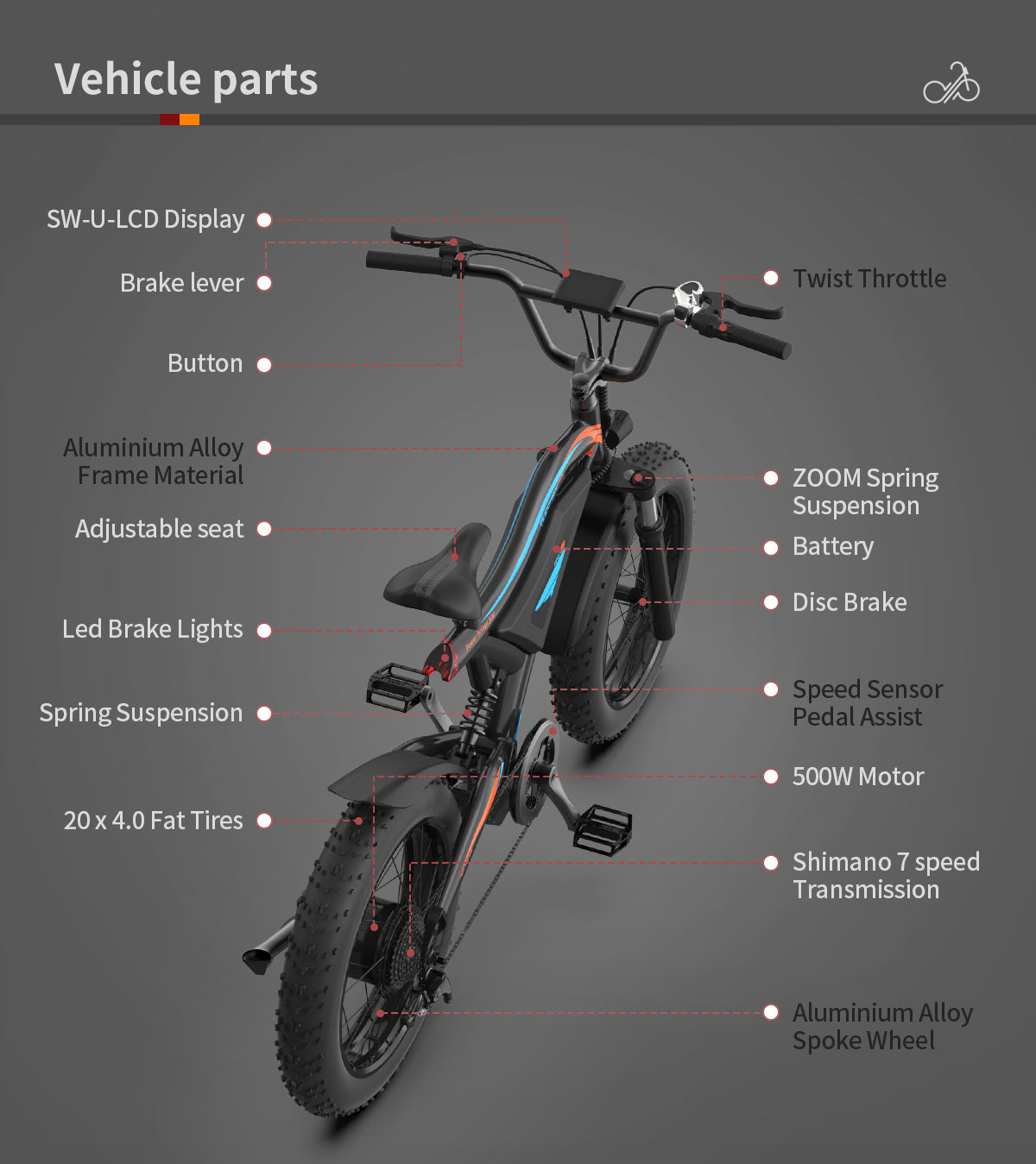 Aostirmotor Electric Bicycle 500W Motor 20" Fat Tire With 48V 15Ah Li Battery S18 Mini Style Black Aluminium