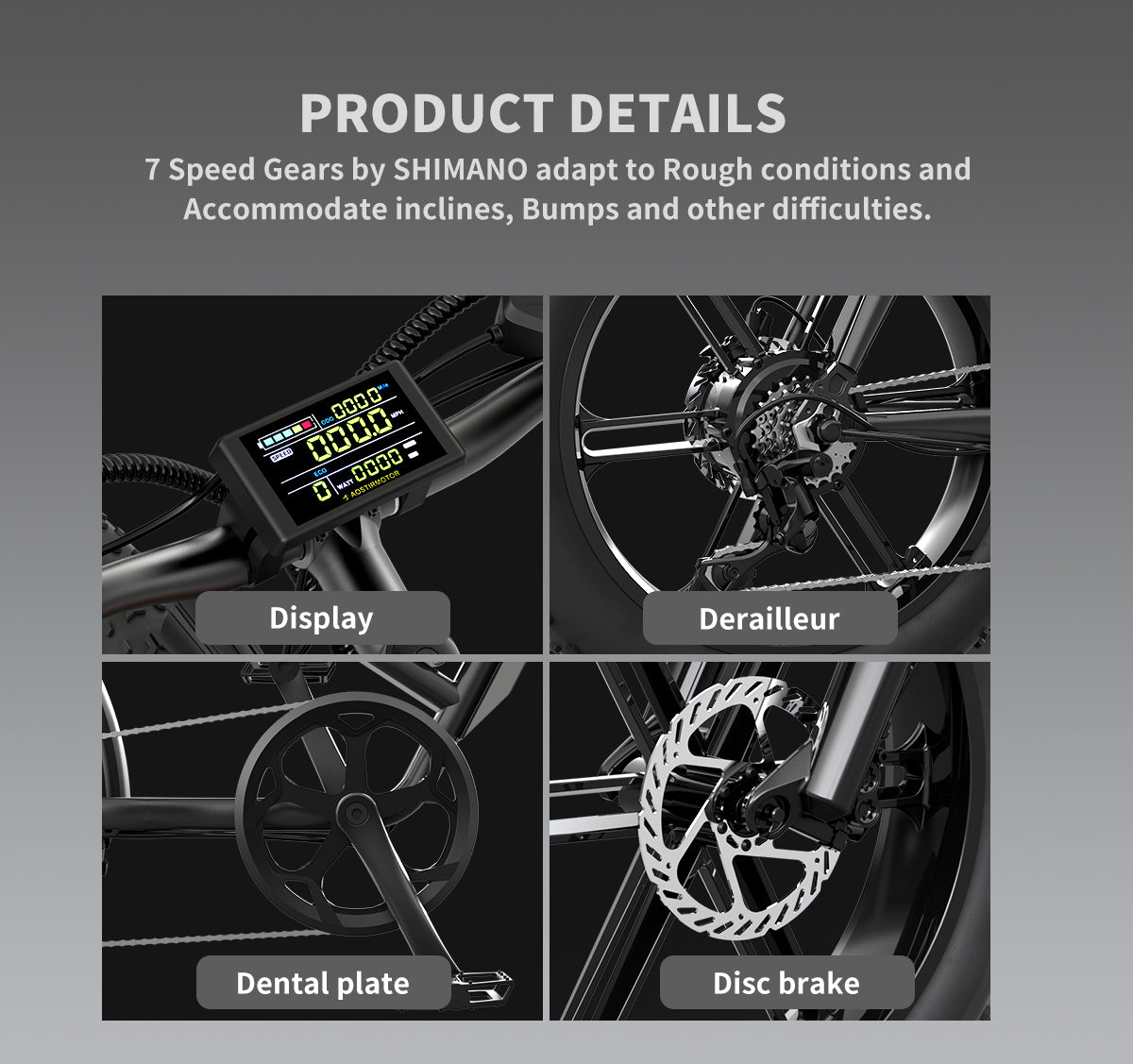 Aostirmotor Pattern Electric Bicycle 750W Motor 20" Fat Tire With 48V 13Ah Li Battery Black Aluminium