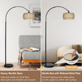 Arc Floor Lamps For Living Room With 3 Color Temperatures, Black Standing Lamp With Remote & Dimmable Led Bulb, Rattan Boho Floor Lamp, Farmhouse Tall Lamp For Bedroom, Over Couch Arched Reading Light Brown Black Rattan Metal