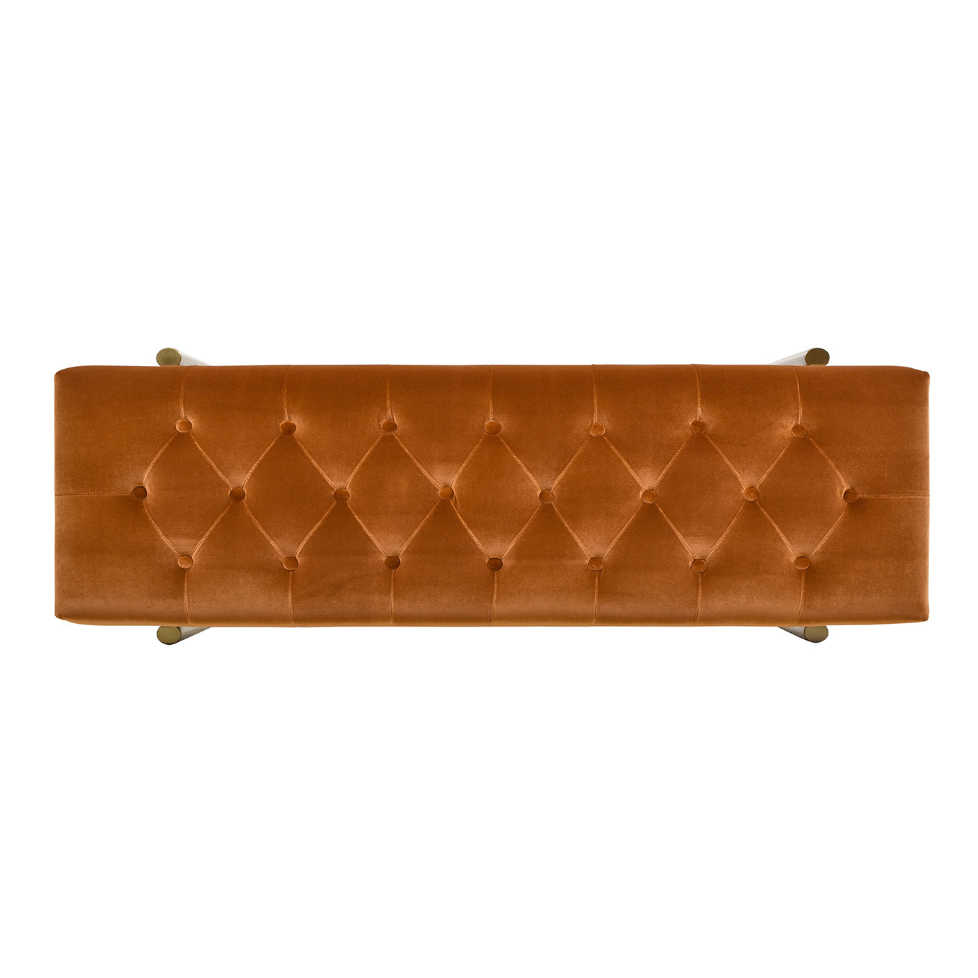 Aria Upholstered Gold Accent Bench, Burnt Orangeperformance Velvet Burnt Orange Foam Velvet