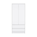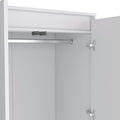 Armoire, Wardrobe Closet With Two Drawers,Hanging Rod, White White Solid Wood Mdf Engineered Wood