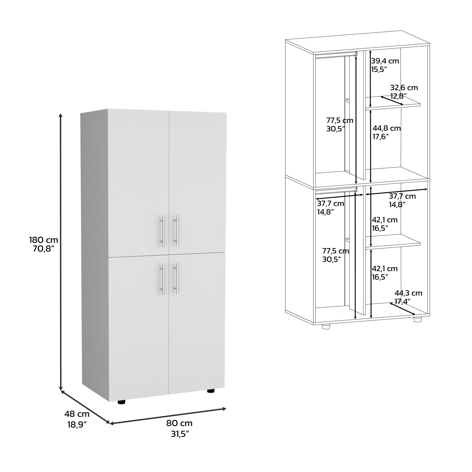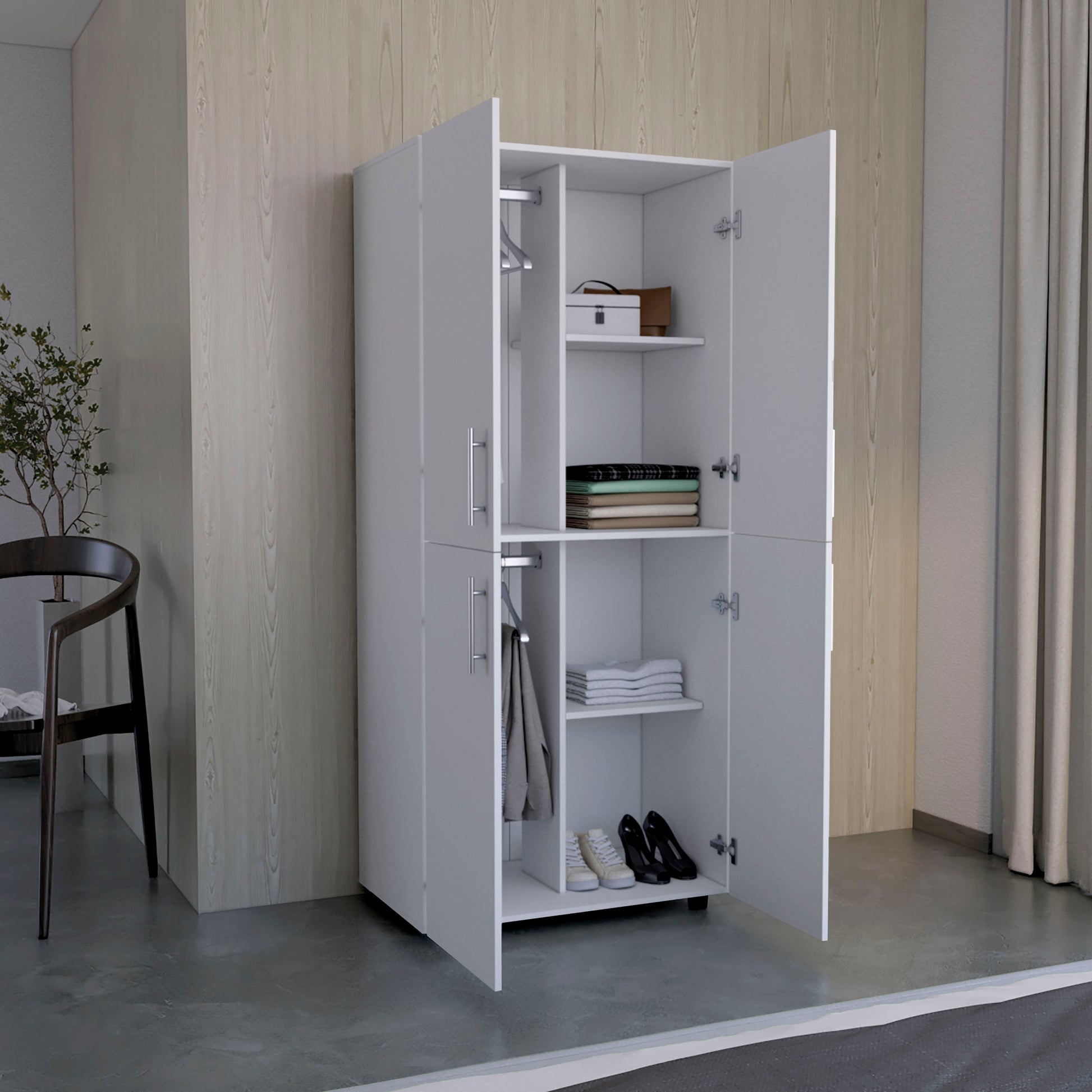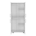 Armoire Wardrove 70" H, Double Doors, 6 Shelves, 2 Hanging Rods, White White Solid Wood Mdf Engineered Wood