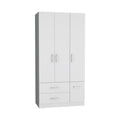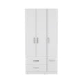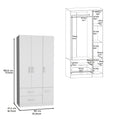 Armoire Wardrove 71", 4 Doors, Hanging Rod, 3 Cabinets, 6 Shelves, White White Solid Wood Mdf Engineered Wood