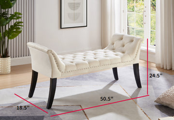 Armrest Button Tufted Ottoman Bench, Upholstered Footrest Stool Rectangular Beige Velvet Fabric Accent Bench For Entryway Dining Room Living Room Bedroom Beige Espresso Bedroom Black Rubberwood Wood Beige Garden Stools Velvet Rectangular