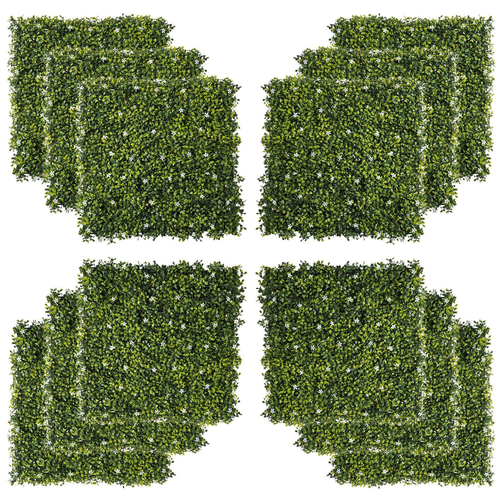 Artificial Grass Wall Panel Backdrop, 12 20" X 20" Boxwood Uv Protection Privacy Coverage Panels For Indoor & Outdoor Decor, Wall & Fence Covering, Milan Leaf & Flowers Green Polyethylene