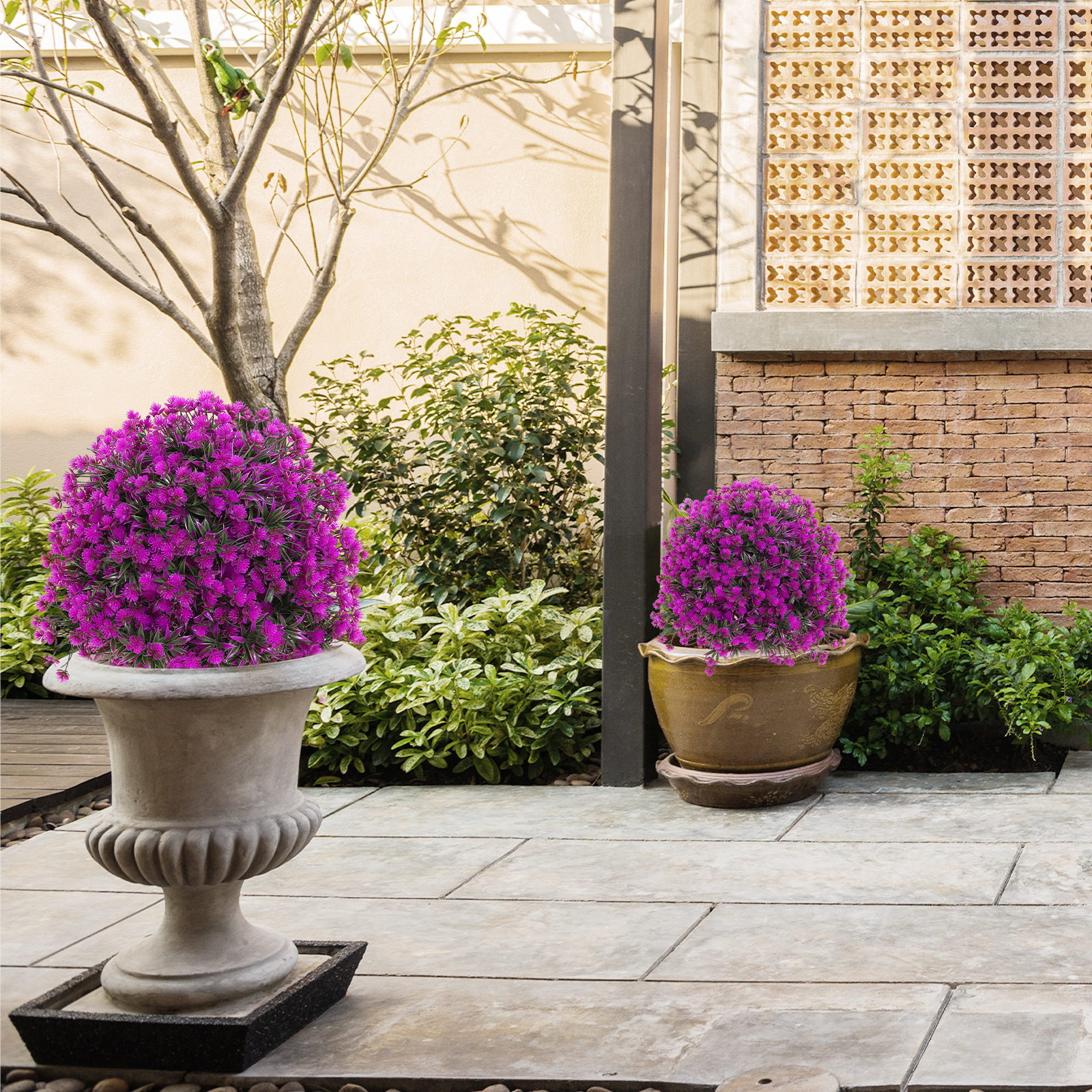 Artificial Olive Topiary Ball Trees Outdoor And Indoor Faux Shrubs Uv Resistant Lasting Evergreen Bushes Potted Plants 2Pcs Set Purple Plastic
