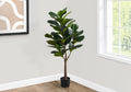Artificial Plant, 47" Tall, Fiddle Tree, Indoor, Faux, Fake, Floor, Greenery, Potted, Real Touch, Decorative, Green Leaves, Black Pot Green Foam Plastic