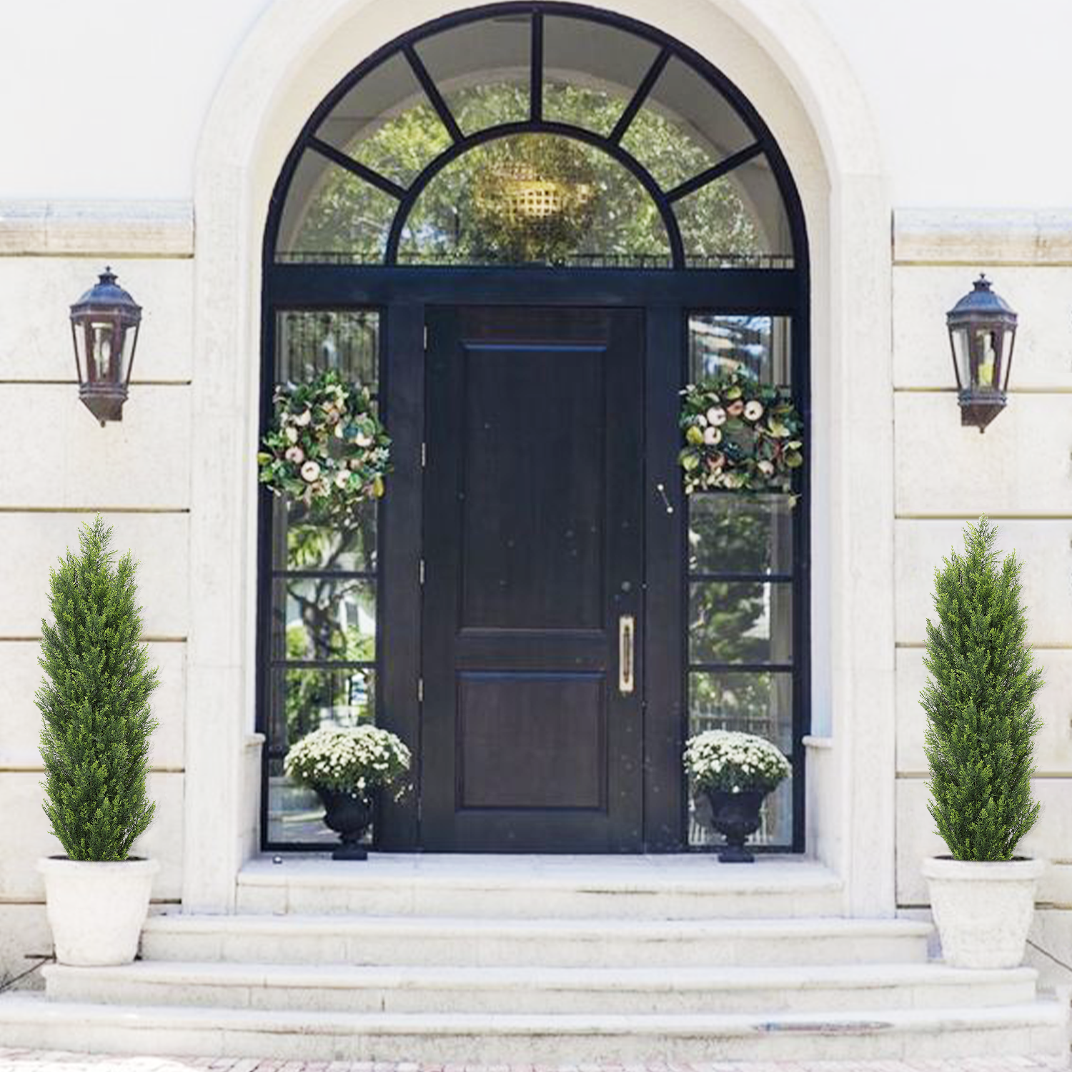 Artificiales For Decor Christmas Like Artificial Cedar Cypress Plants Faux Boxwood Pine Greenery Trees Plantas 2Pcs Set Green Plastic