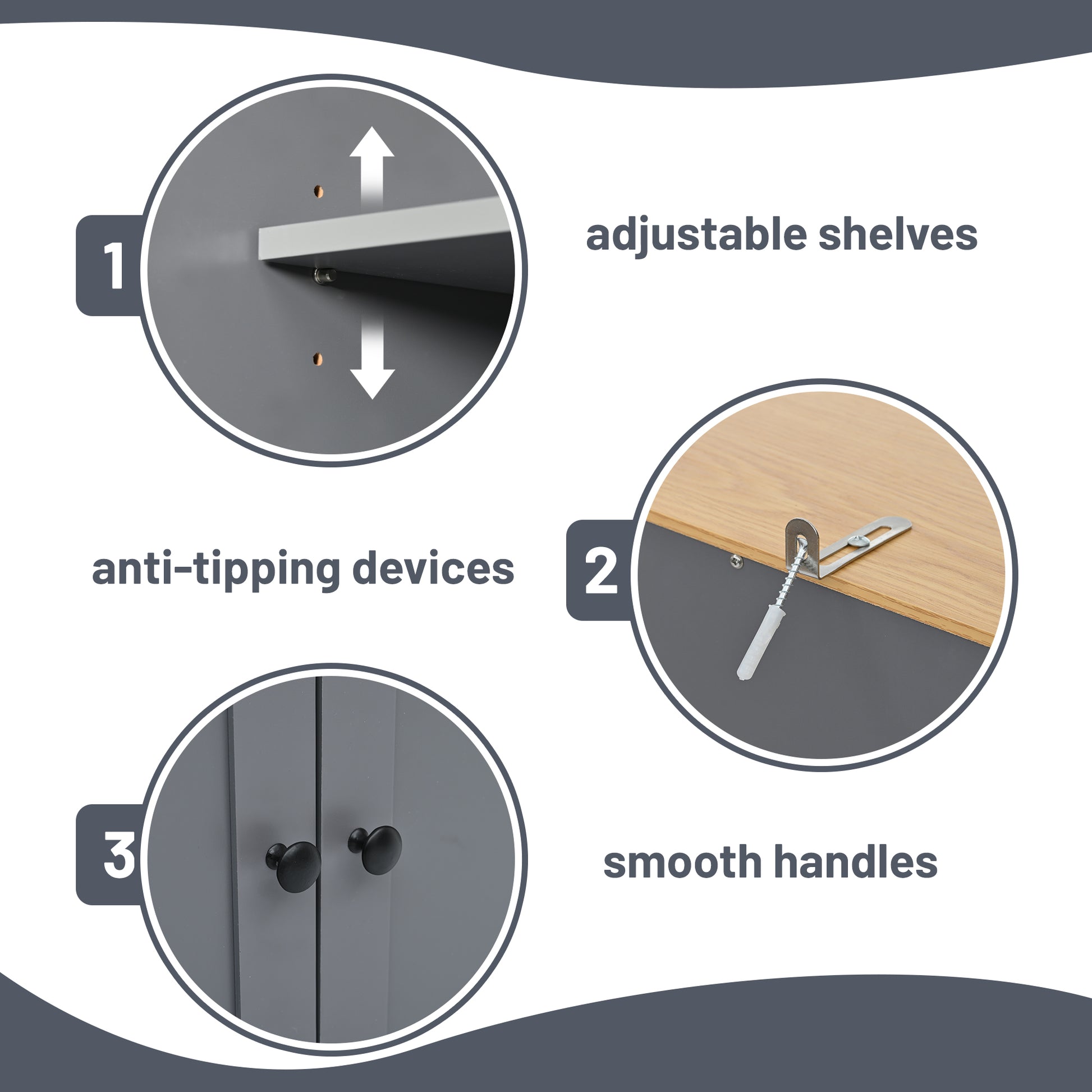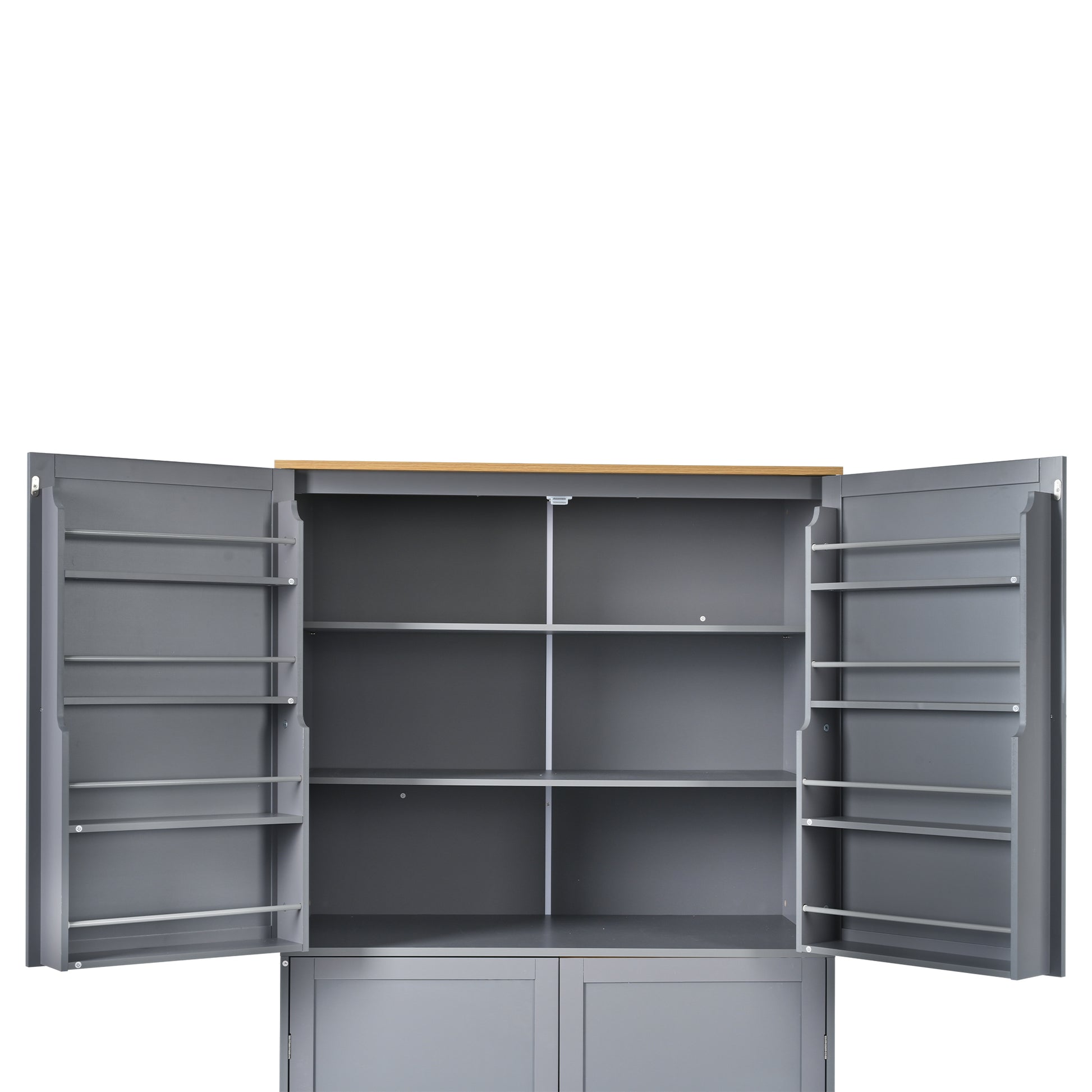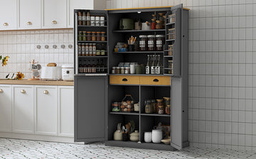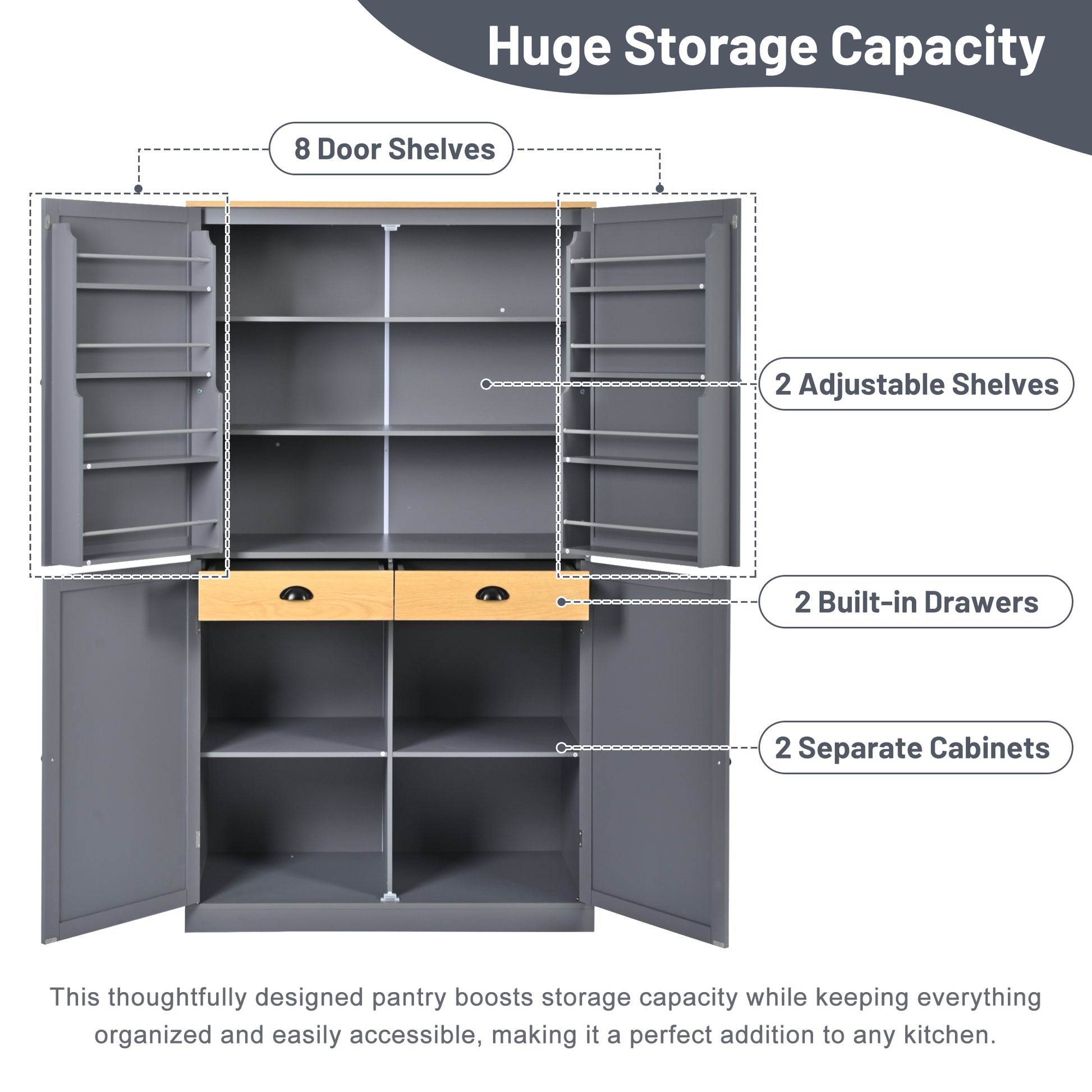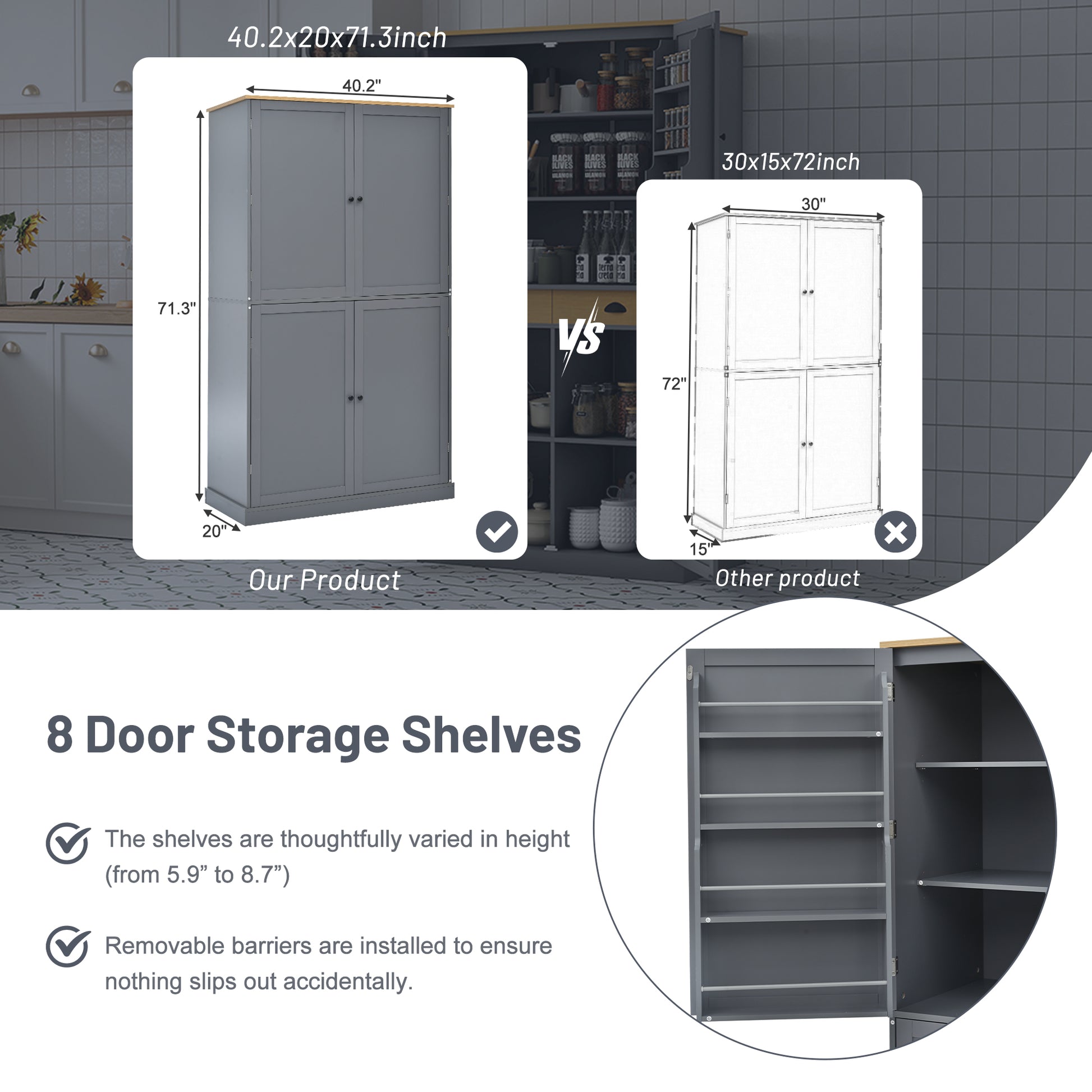 Assembly 40.2X20X71.3Inch High Freestanding Kitchen Pantry Large Cupboard Storage Cabinet With 2 Drawers, 2 Adjustable Shelves, 8 Door Shelves For Kitchen, Dining Room,Gray Gray Kitchen Farmhouse