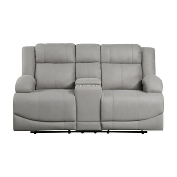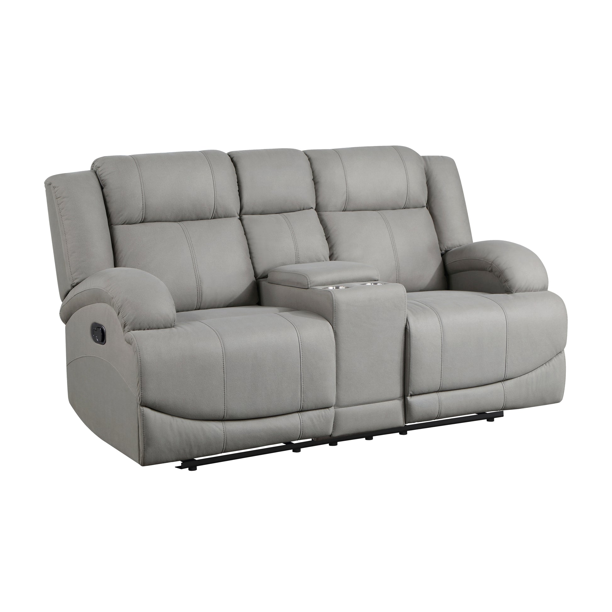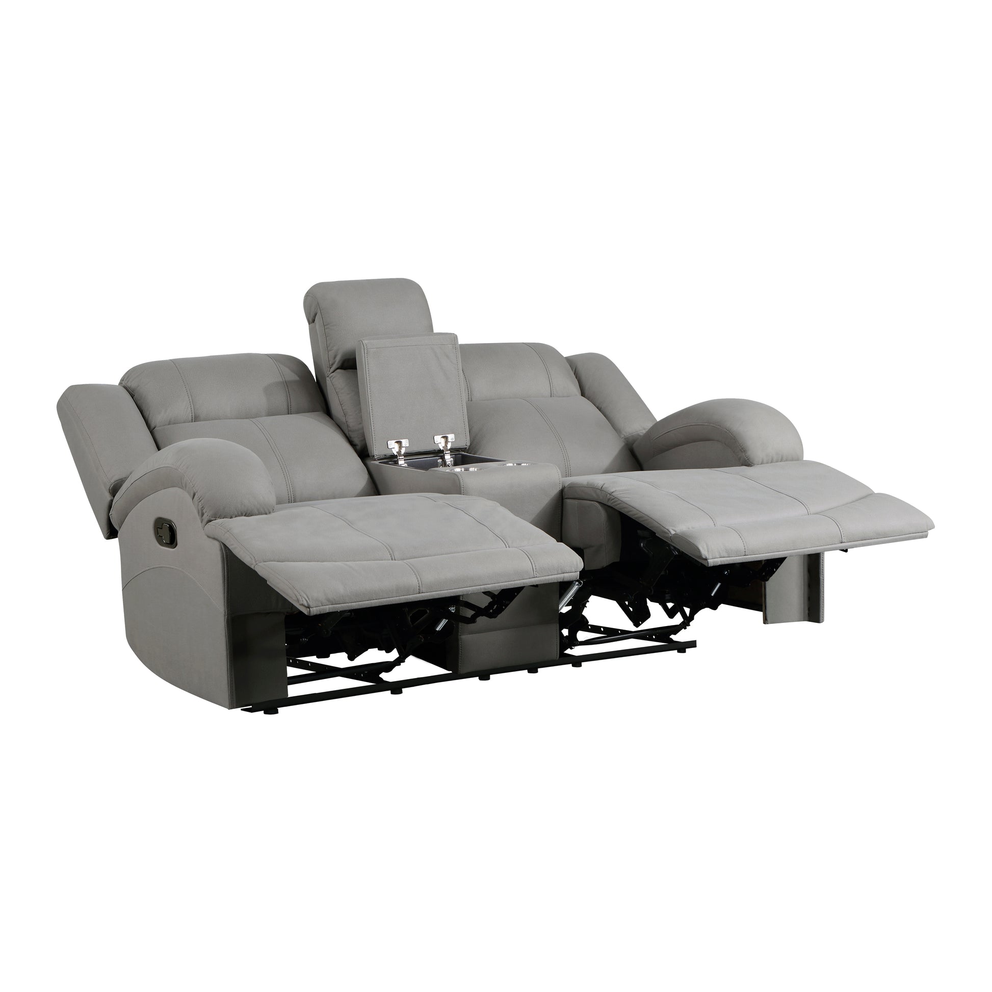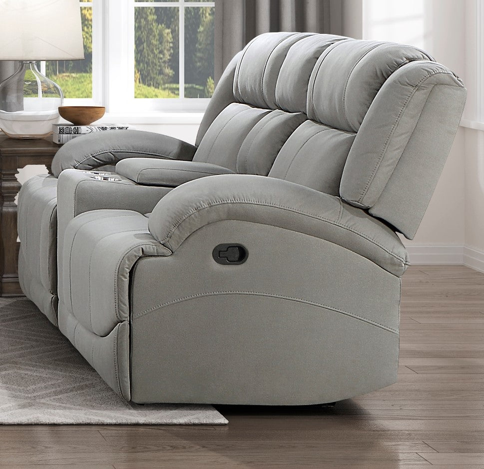 Attractive Gray Color Microfiber Upholstered 1Pc Double Reclining Loveseat With Center Console Transitional Living Room Gray Primary Living Space Transitional Microfiber