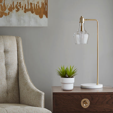 Auburn 24" H Table Lamp With Marble Base Gold Cotton