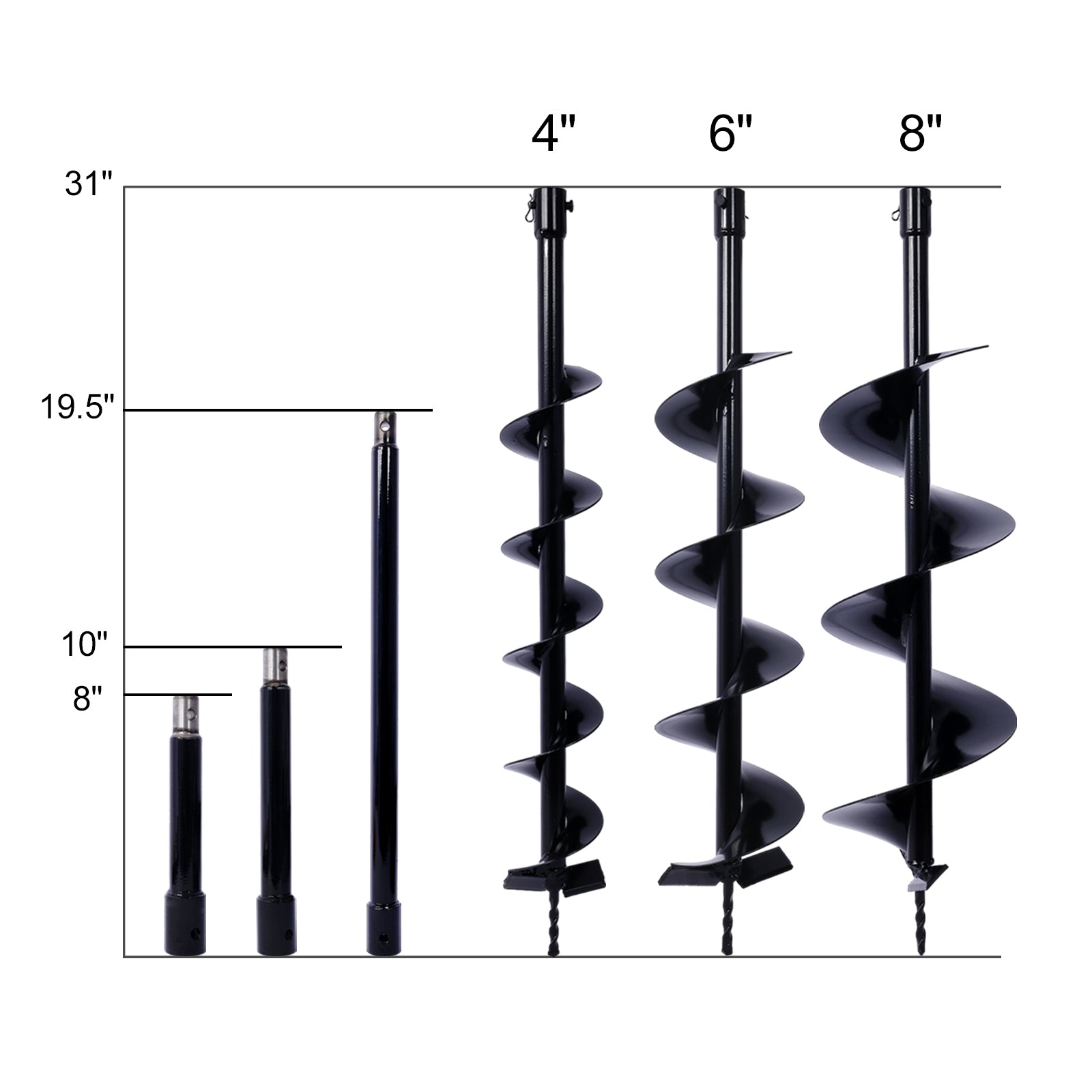 Auger Drill Bit For Planting Hole, Bulb Bedding Digging Post Hole Planting Tool For 3 4" Shaft Auger,Hole Digger Replacement Auger Bits Earth Auger Digging Bit 4In 6In 8In Extension Rod Kit Black Steel
