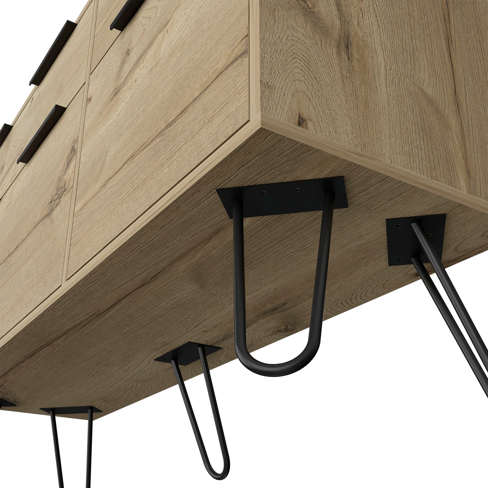Augusta Double Dresser, Superior Top, Hairpin Legs, Four Drawers Light Oak Light Oak Bedroom Modern Particle Board