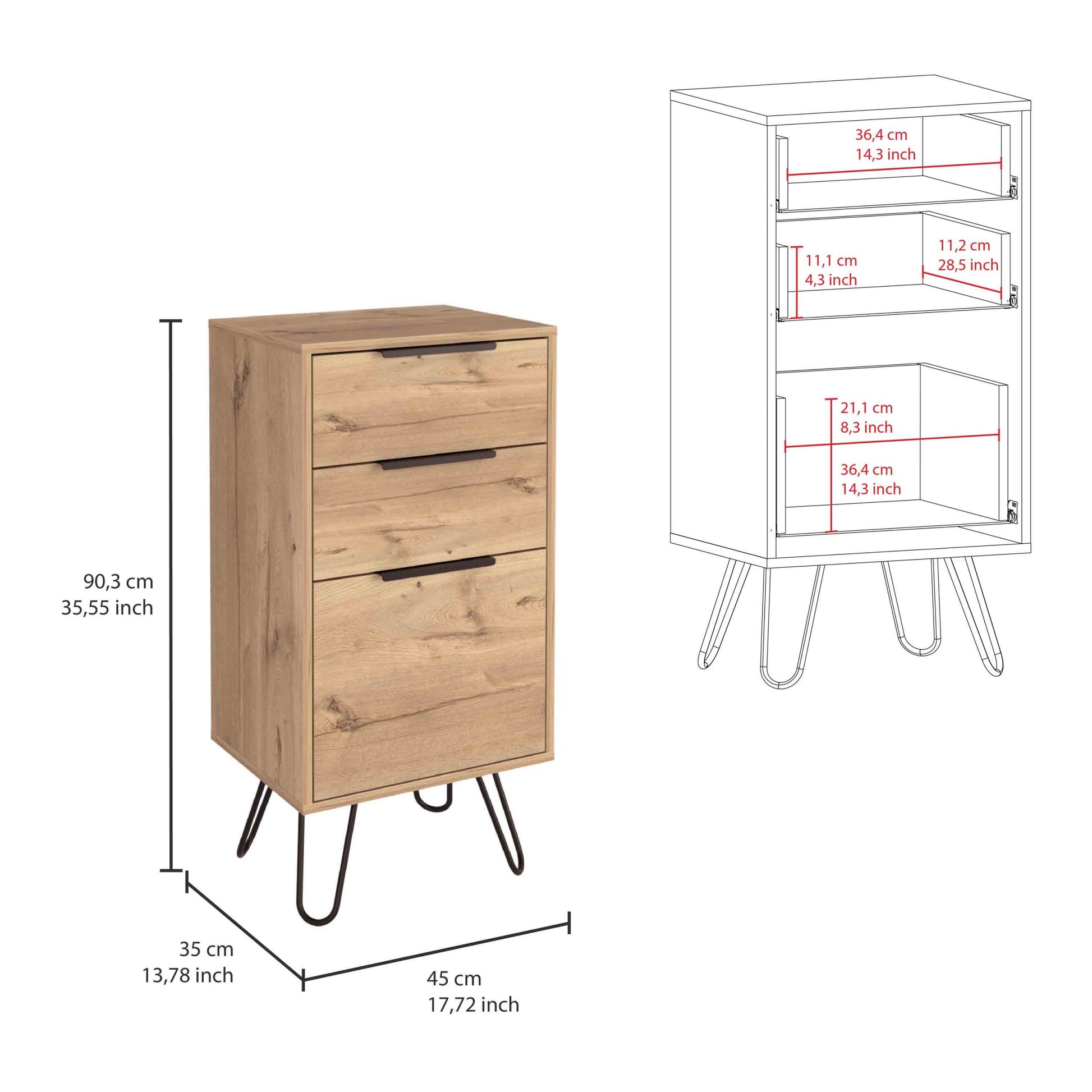 Augusta Light Dresser, Hairpin Legs, Superior Top,Three Drawers Light Oak Beige Bedroom Modern Particle Board Particle Board