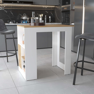 Aurora Kitchen Island With Open Compartment And Cabinet In White And Macadamia White Engineered Wood