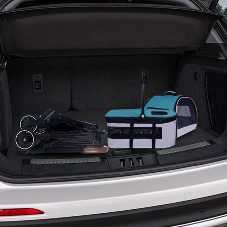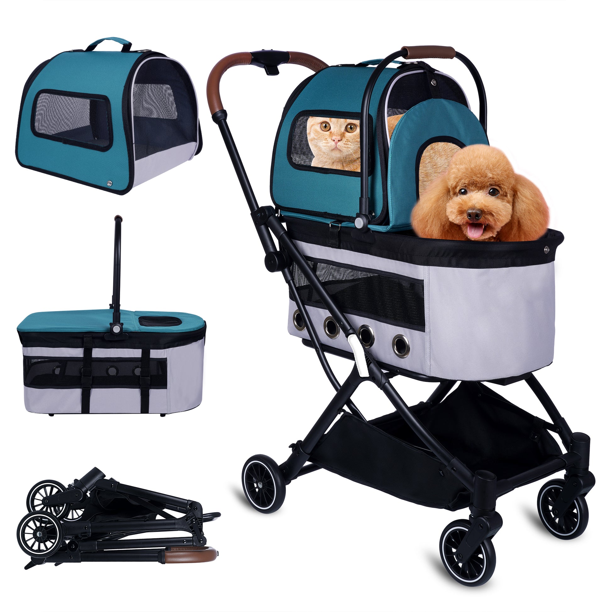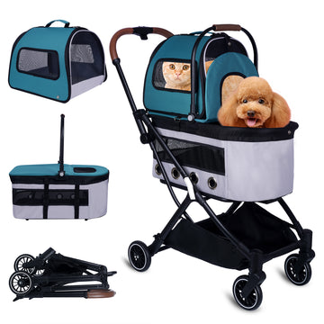 Automatic Folding Double Decker Pet Trolley, Separate Pet Trolley Lightweight Small And Medium Dog Cat Dog Trolley Dark Green Oxford Fabric