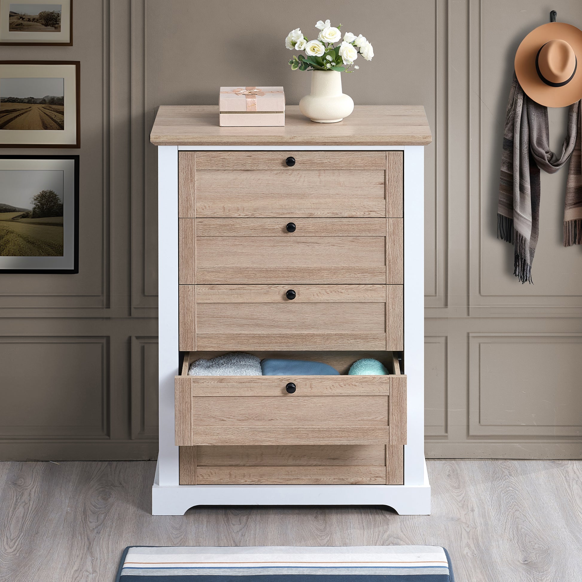 Autumn 5 Drawer Chest With Interlock Drawer Feature Drawer Slide And Interlock Pre Assembly, Drawer Chest For Closet Tall Dressers For Bedroom Clothes Organizer Tool Easy Assembly, White Oak Oak Natural Wood Off White White Bedroom American